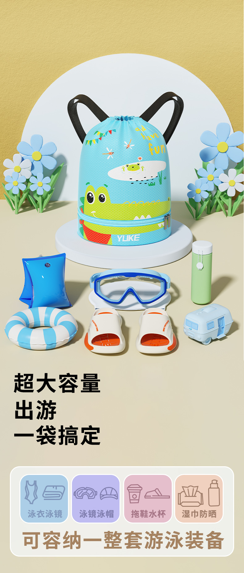 兒童遊泳包防水乾濕分離男女童收納袋大容量沙灘旅行可攜式雙肩後後背包