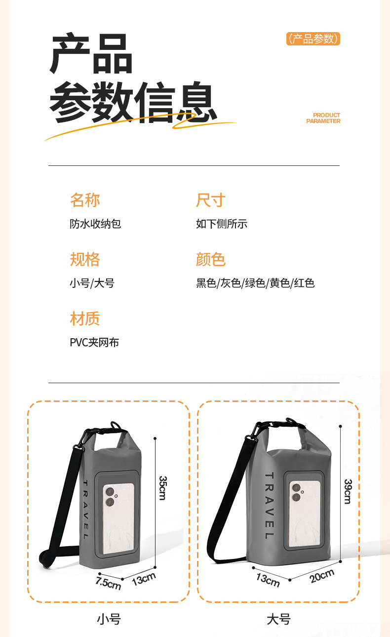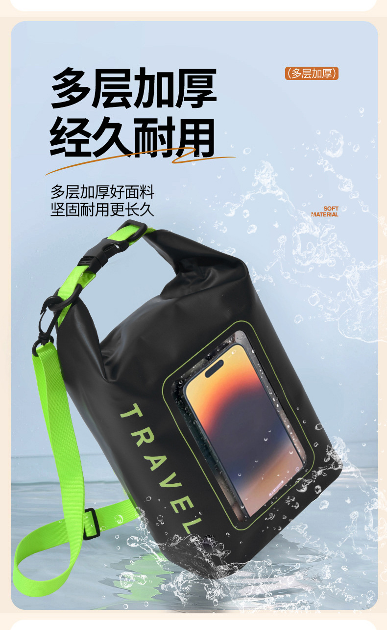 夏季沙灘2L防水包戶外斜後後背包二合一手機防水袋PVC遊泳溯谿漂流
