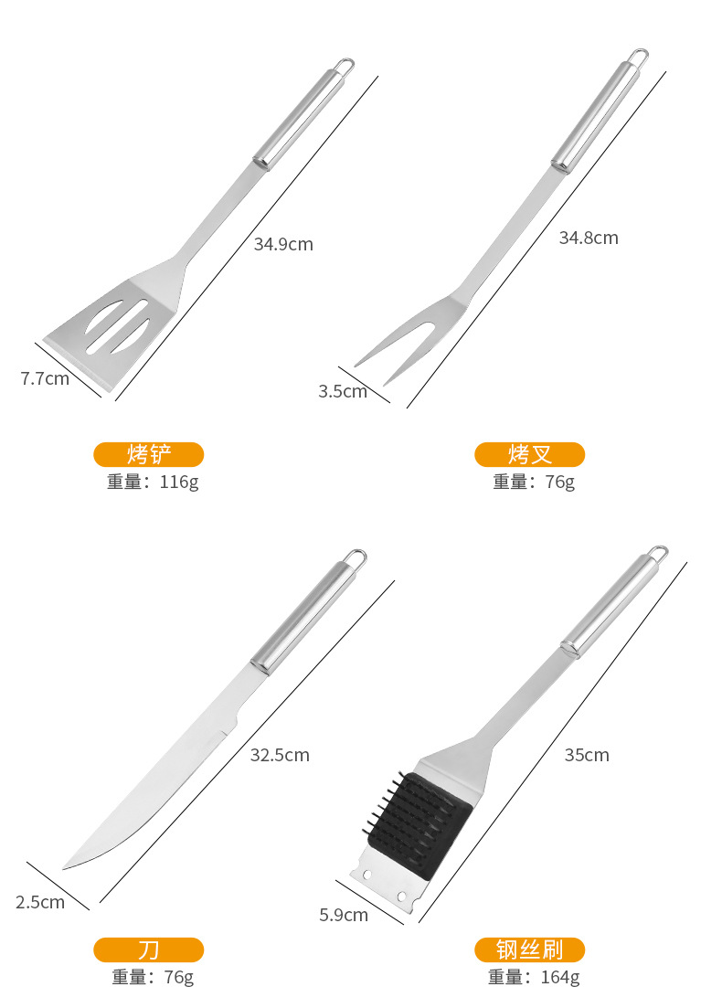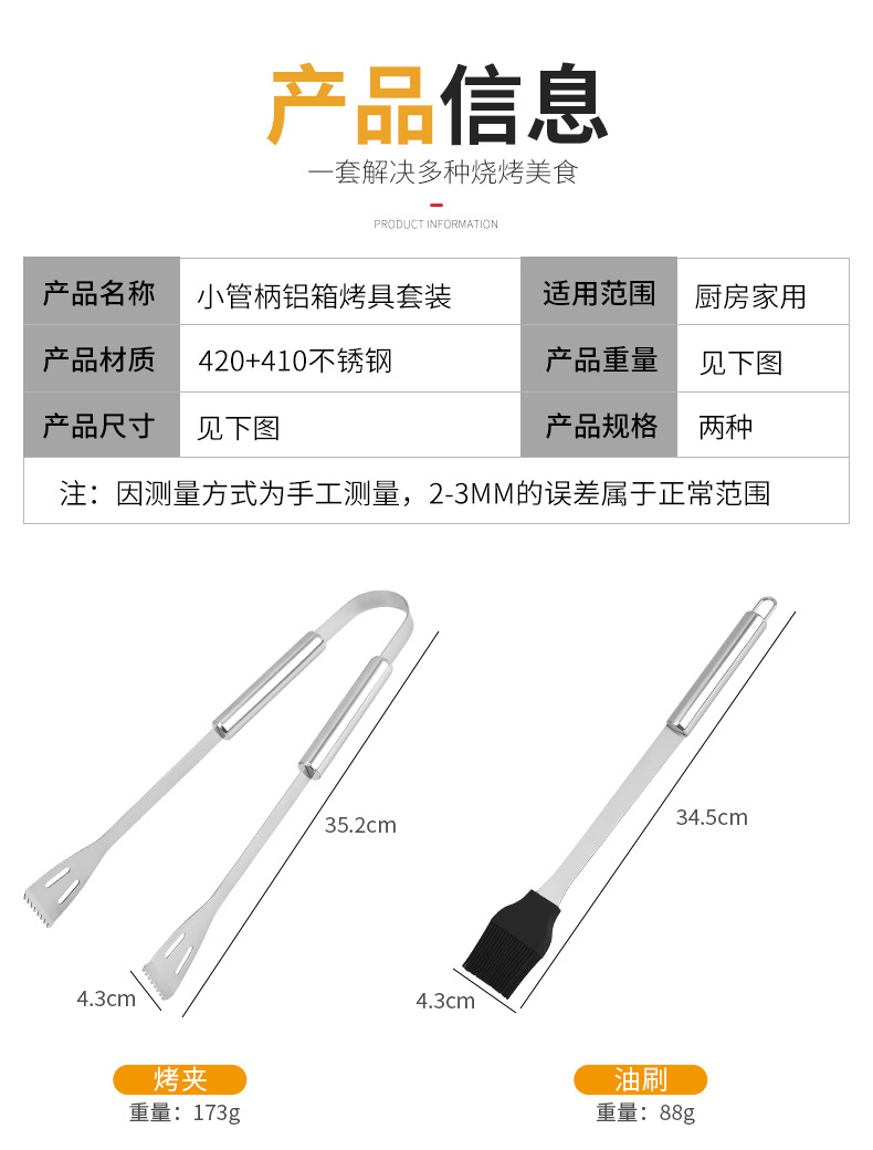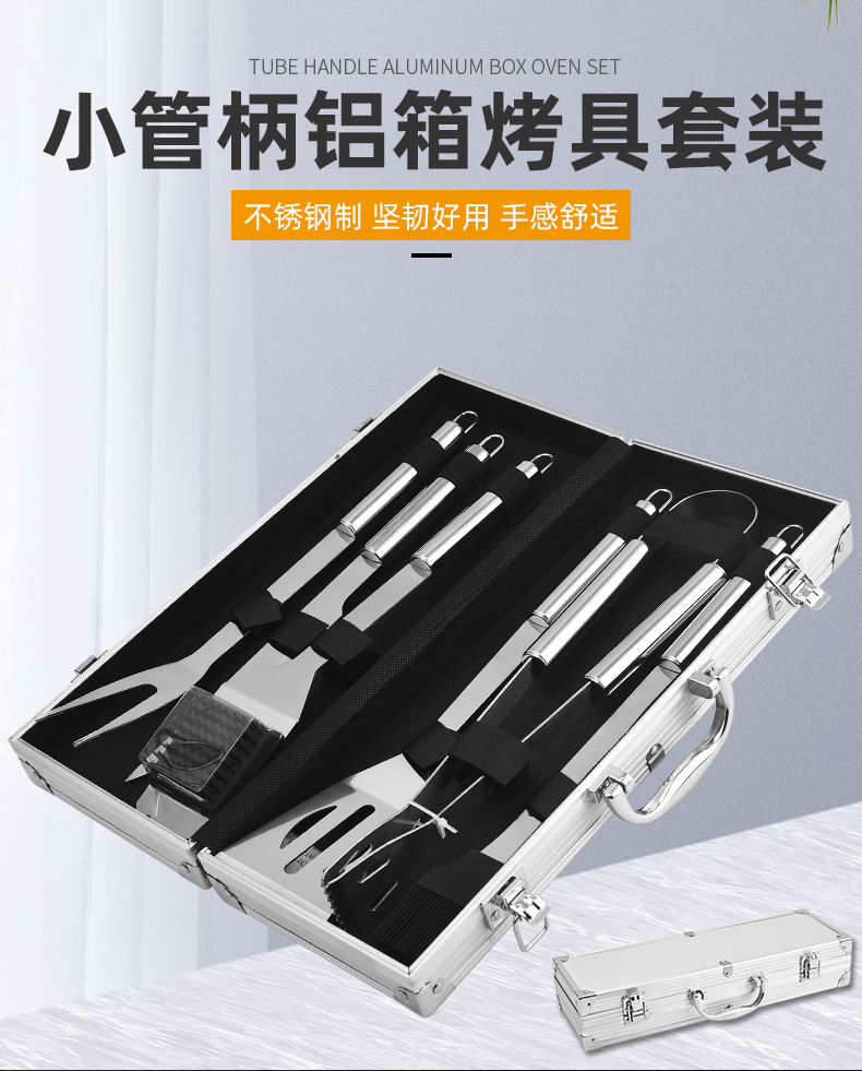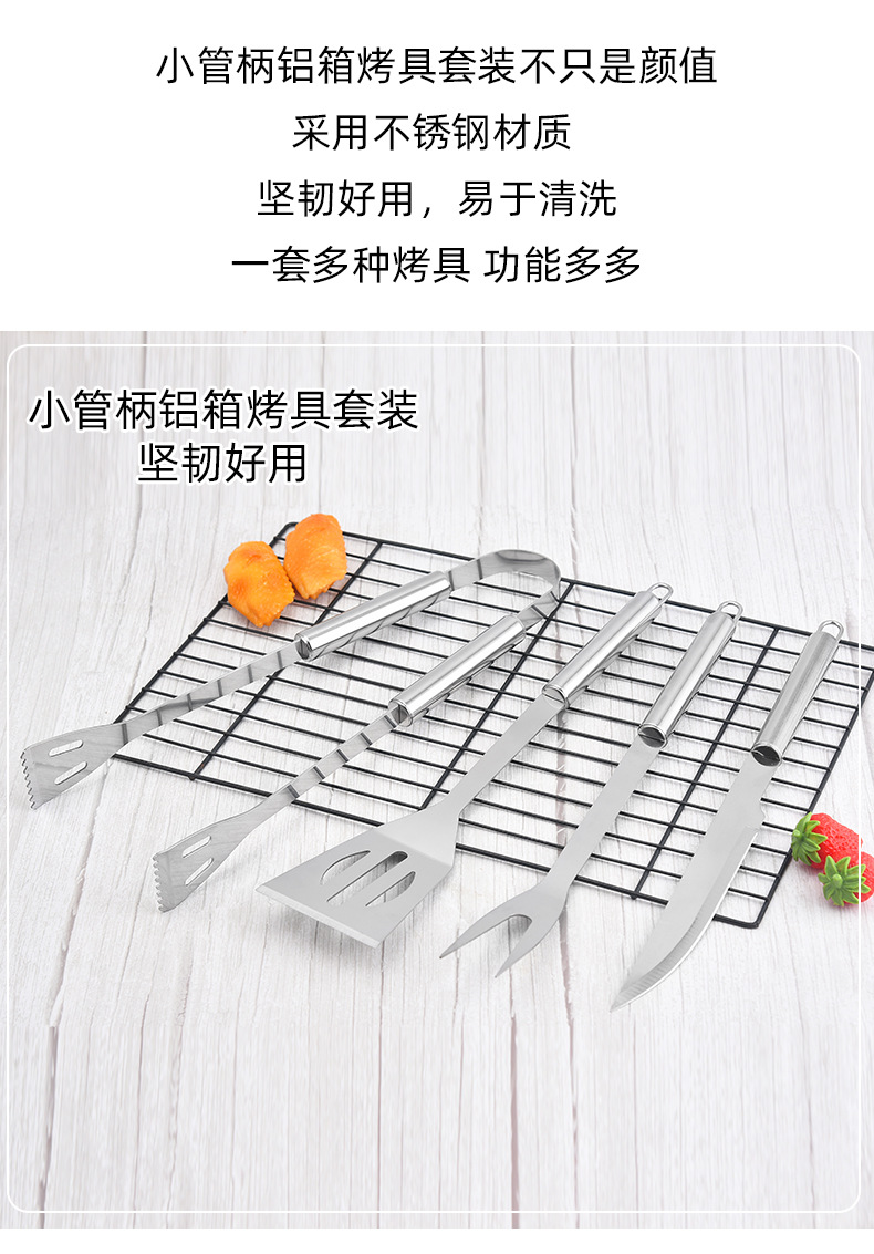 小琯柄鋁箱烤具套裝 BBQ戶外燒烤工具套裝 不鏽鋼小琯柄燒烤用具