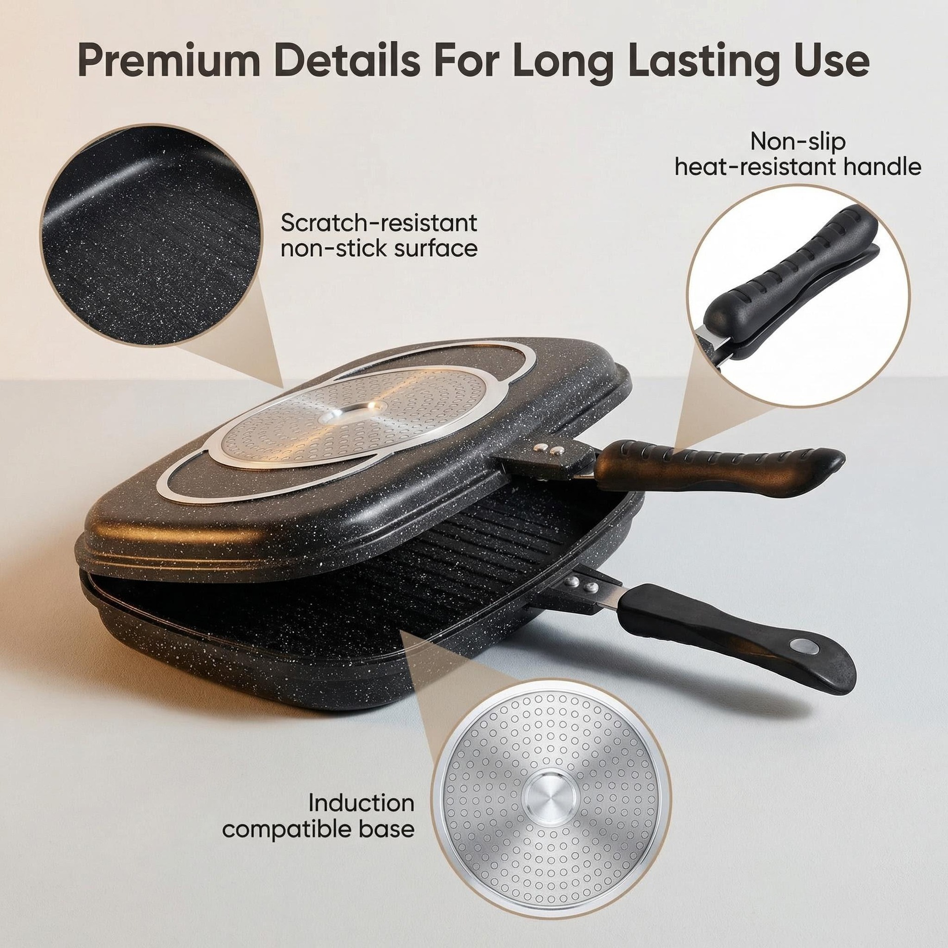 韓式多款雙面烤盤煎鍋無煙微壓煎鍋雙面加熱平底不沾鍋瓦斯電磁爐