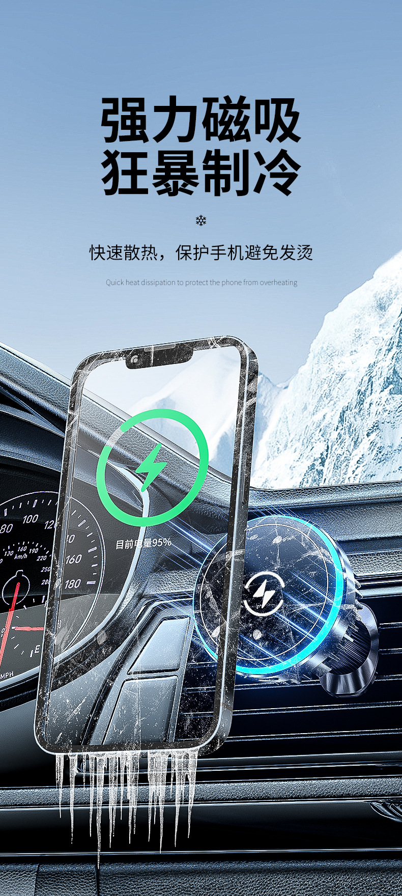 魔夾T2半導體製冷車用磁吸無線充通用智能導航車用手機散熱器支架