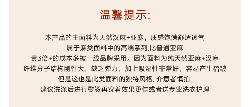 品牌線面料,也是市面上很少見的,是兩種頂*級天然麻的結合: