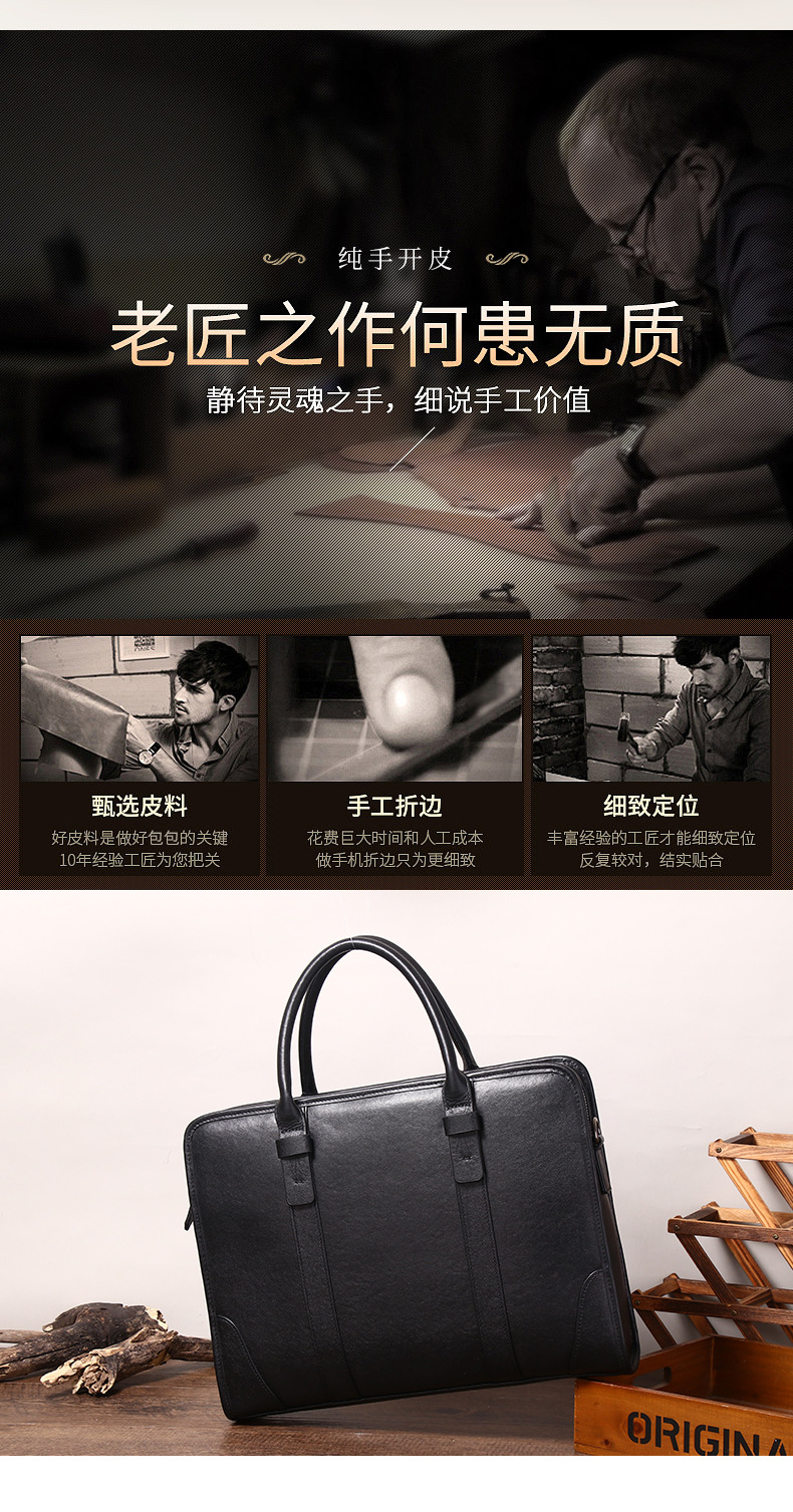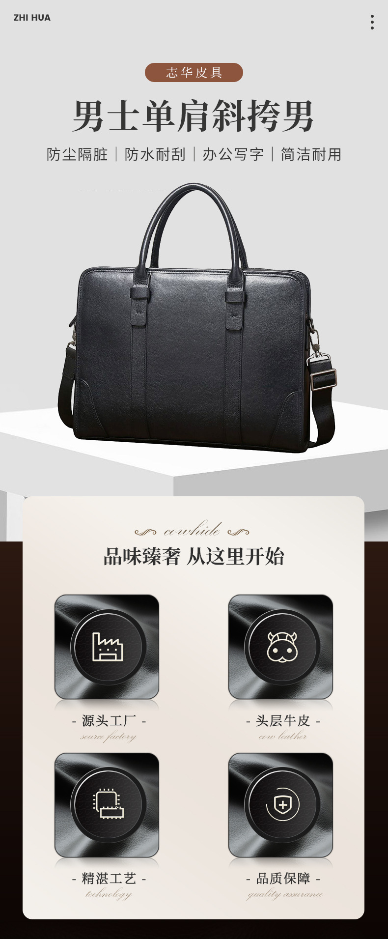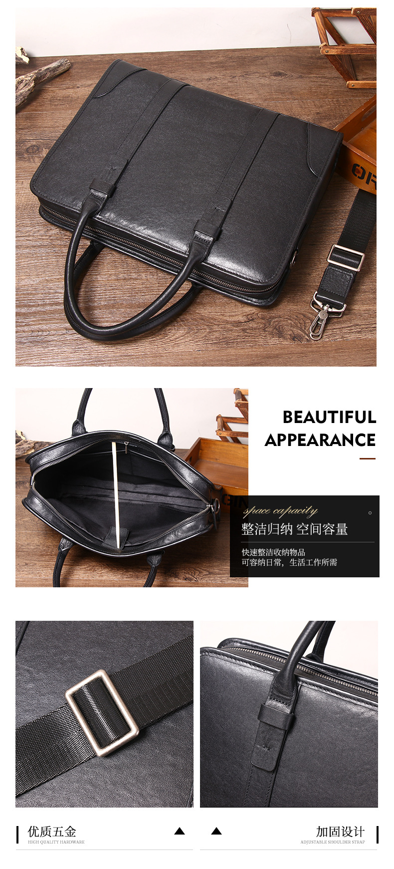 手提公文商務男士頭層牛皮電腦包休閒大容量單肩斜背男包真皮9723