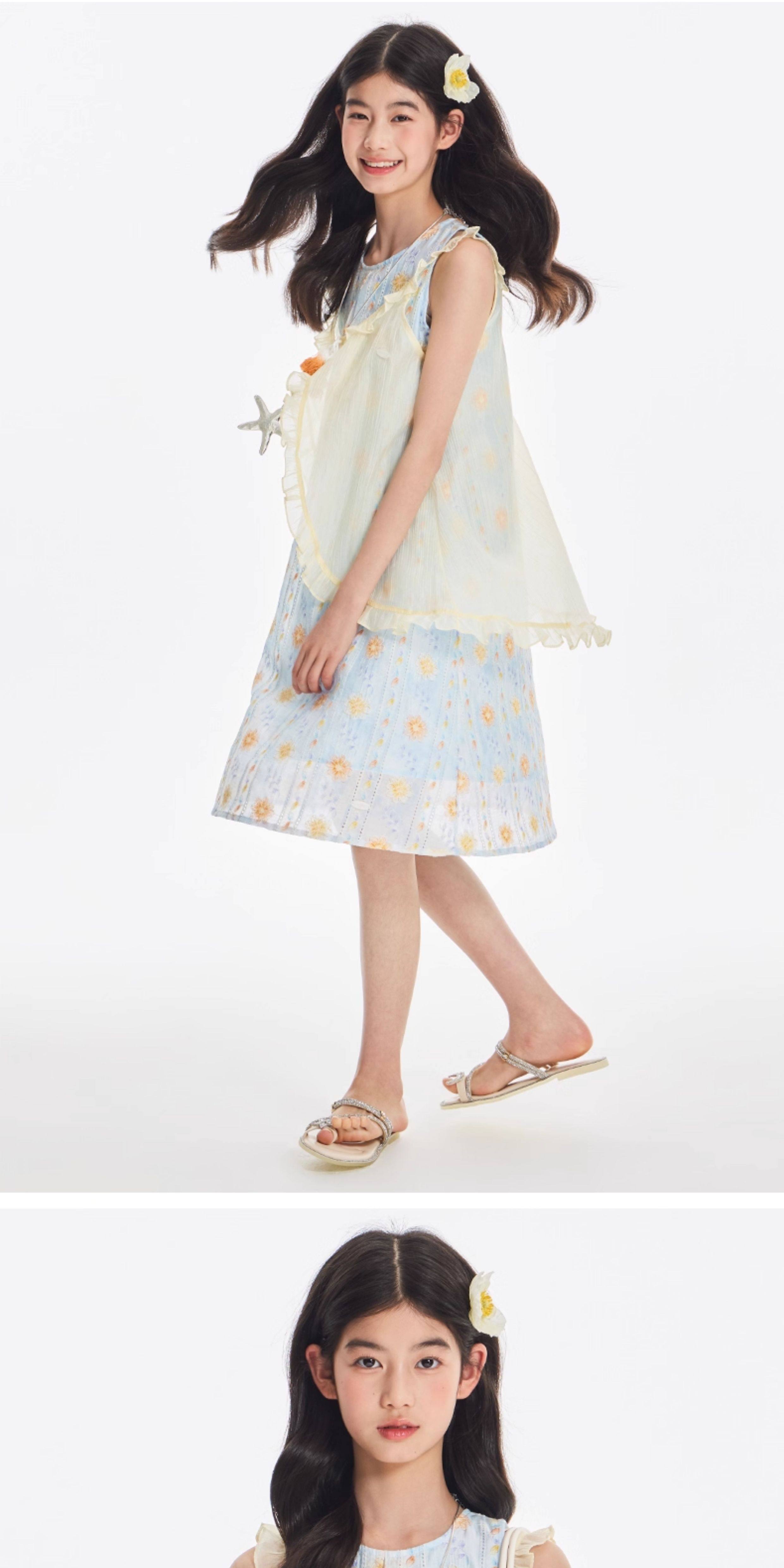 BarryBanny女童萊賽爾連衣裙夏季度假背心裙甜美疊穿沙灘風長裙