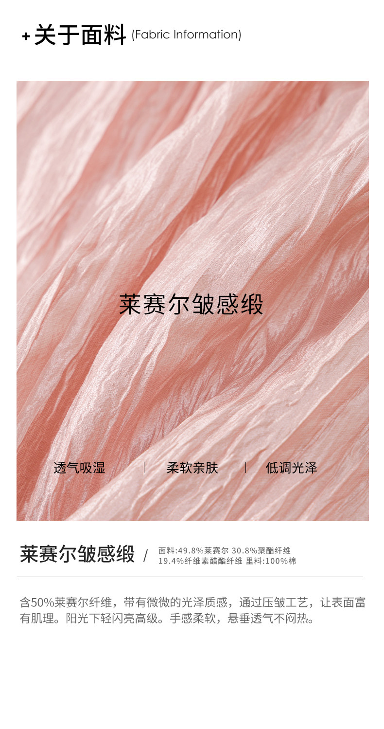 | 材質成分 | 萊賽爾纖維(萊賽爾)49.8% 聚酯纖維30.8% 醋酯纖維(醋纖)19.4% |