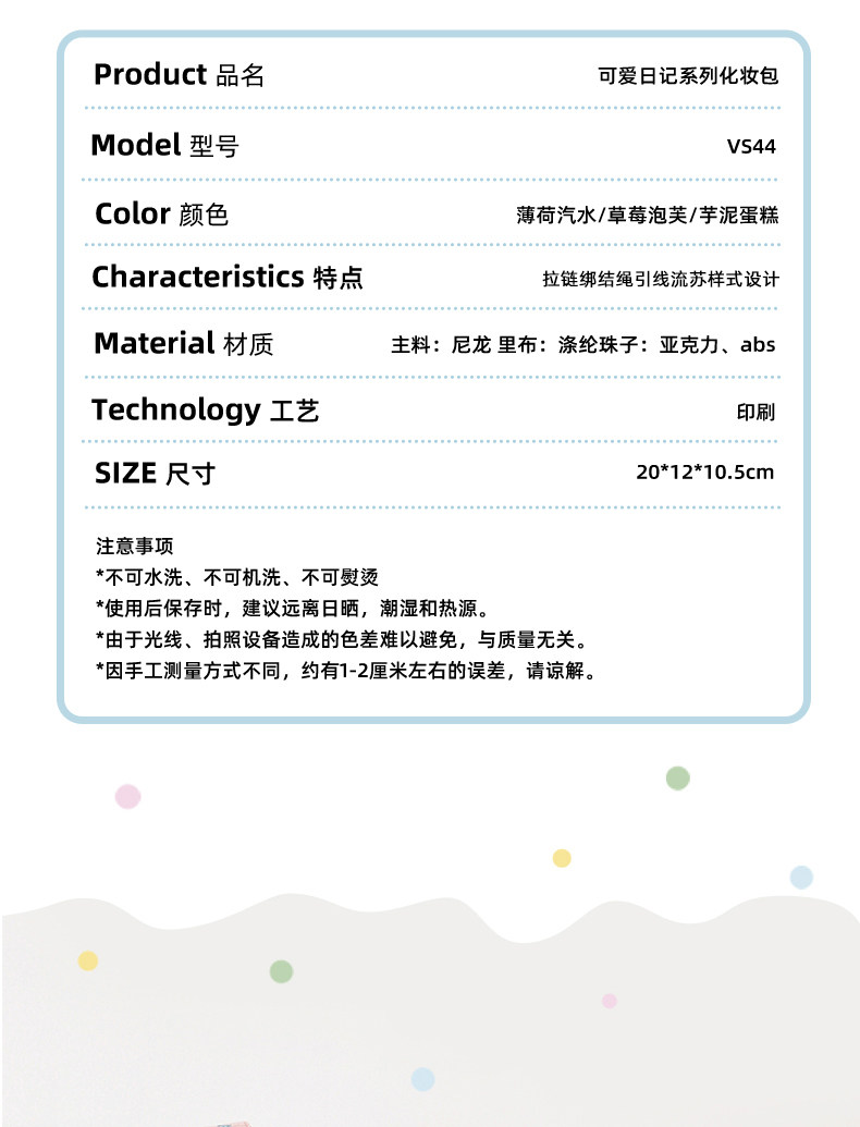 VANWALK手賬系列 原創櫻桃小房子洗漱包女生旅行可攜式收納包化妝包