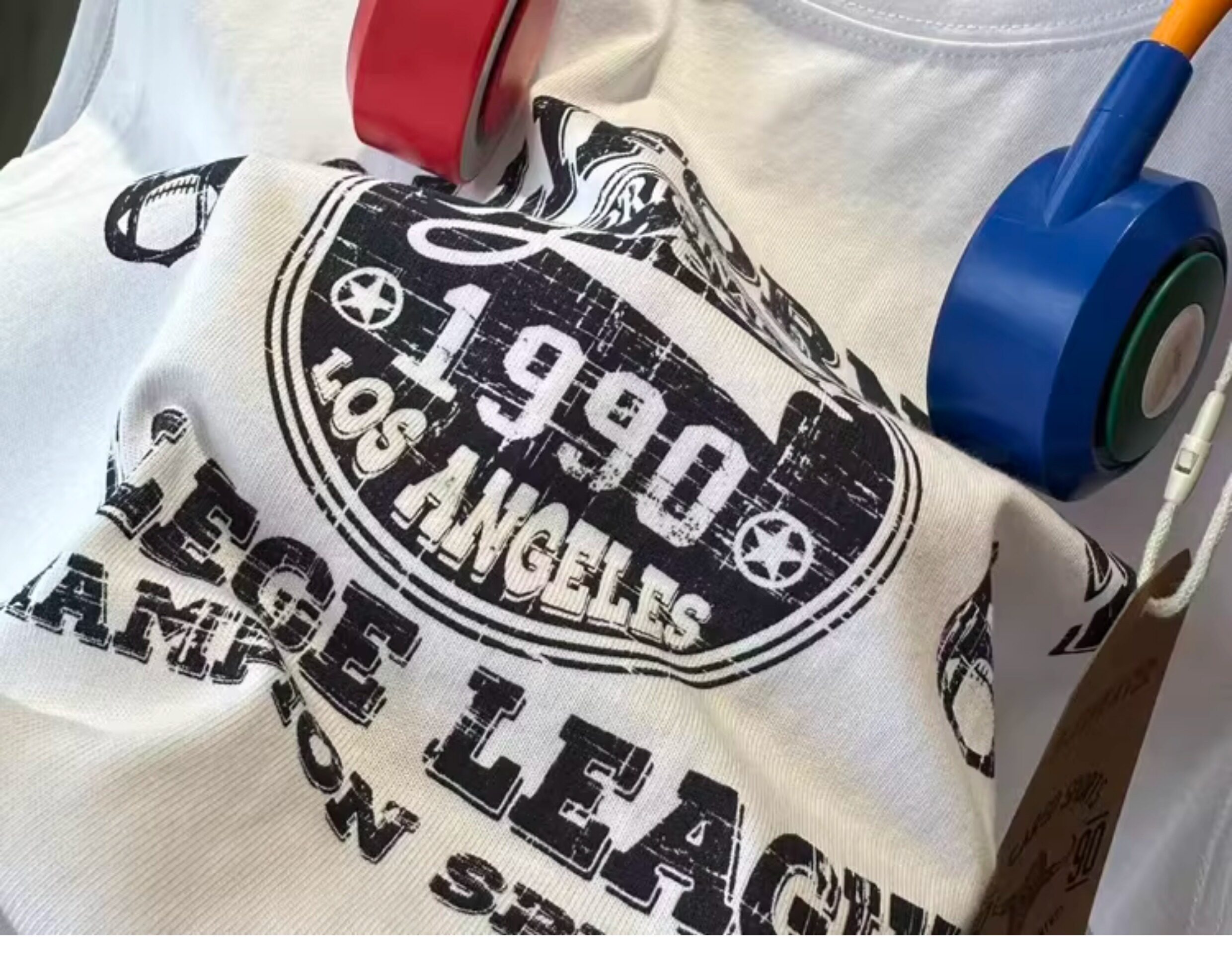 美式復古男汗背心2026夏季新款時尚潮流運動健身重磅純棉無袖坎肩