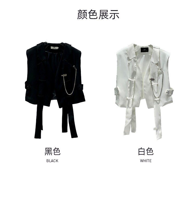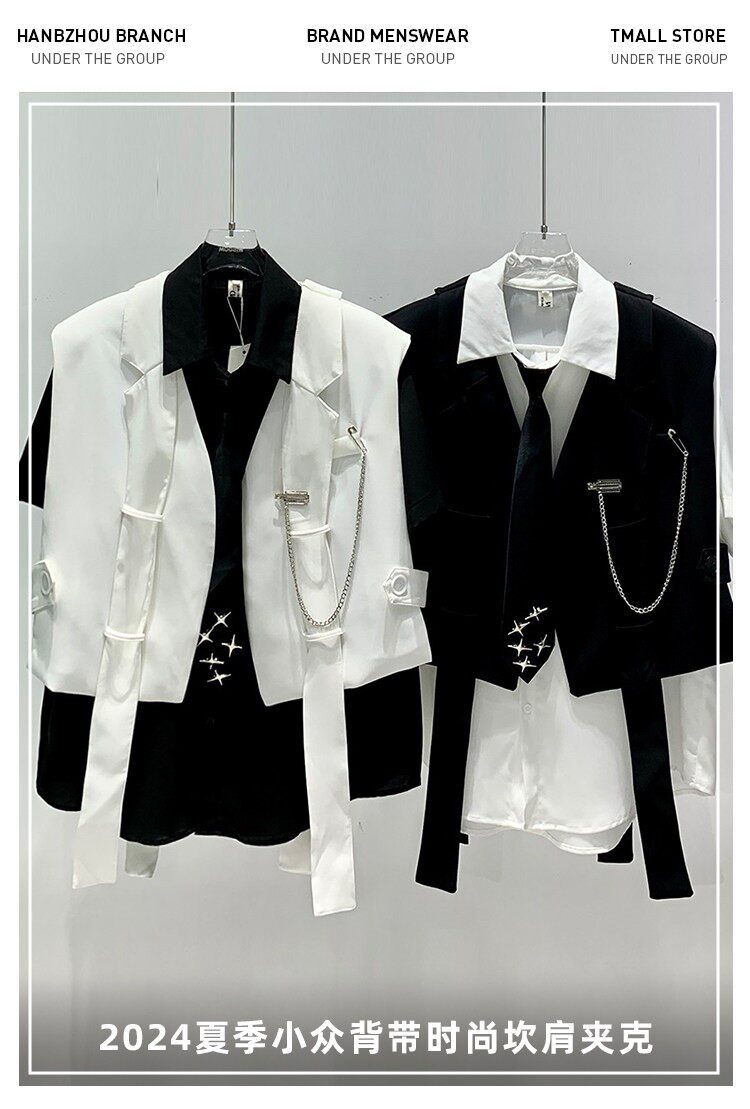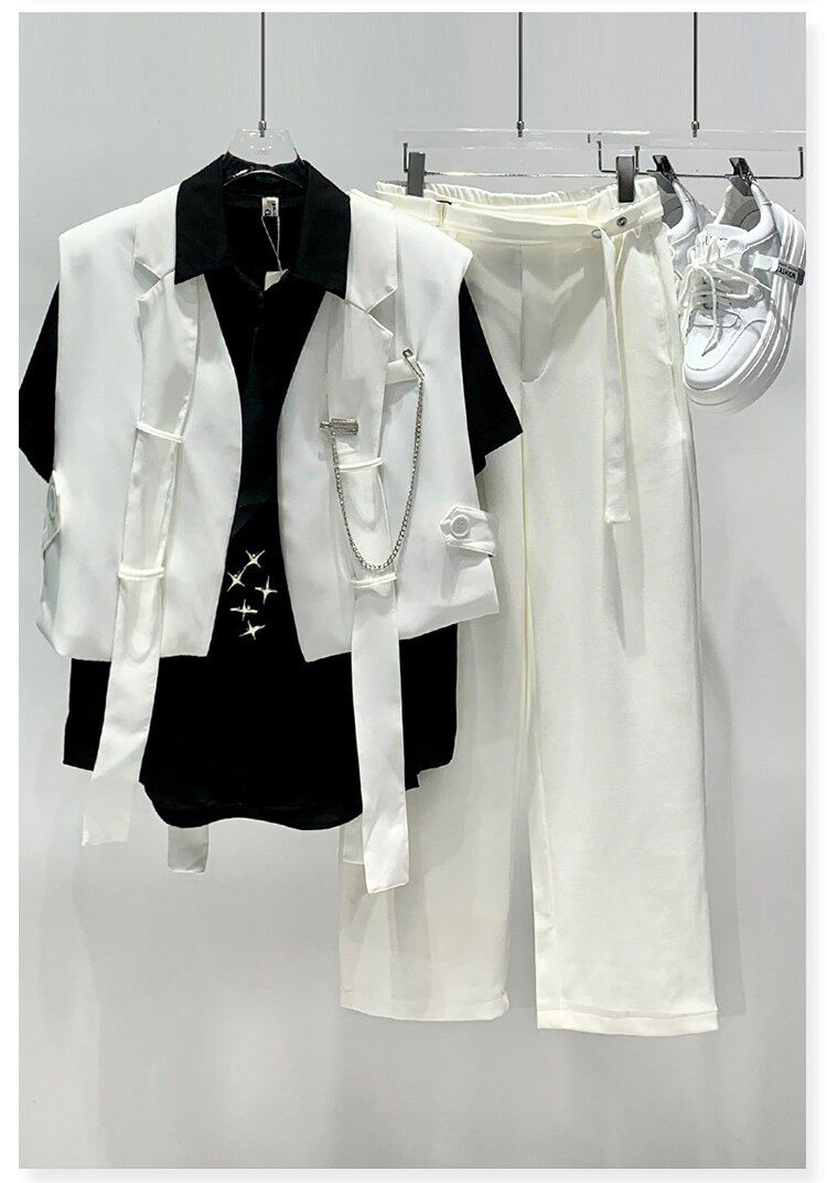 YIFAN黑色西裝馬甲男韓版潮牌網紅髮型師背帶時尚坎肩設計感夾克
