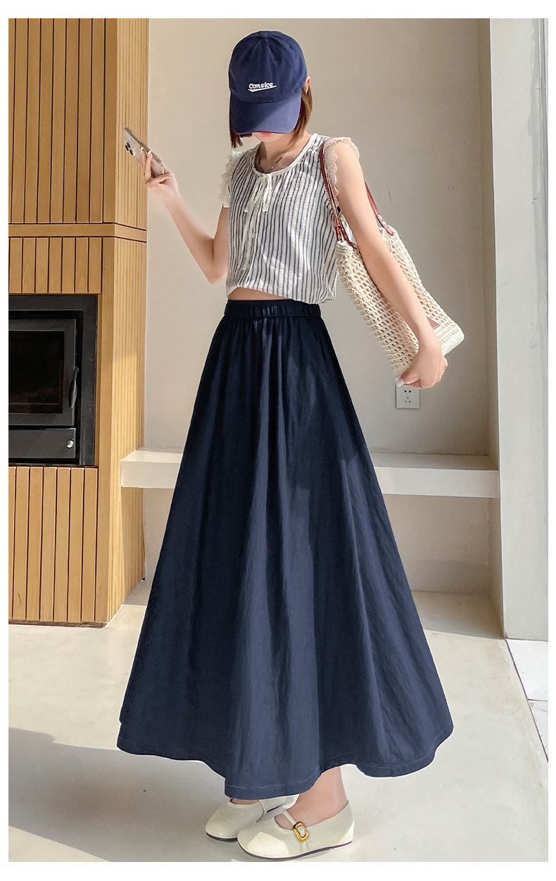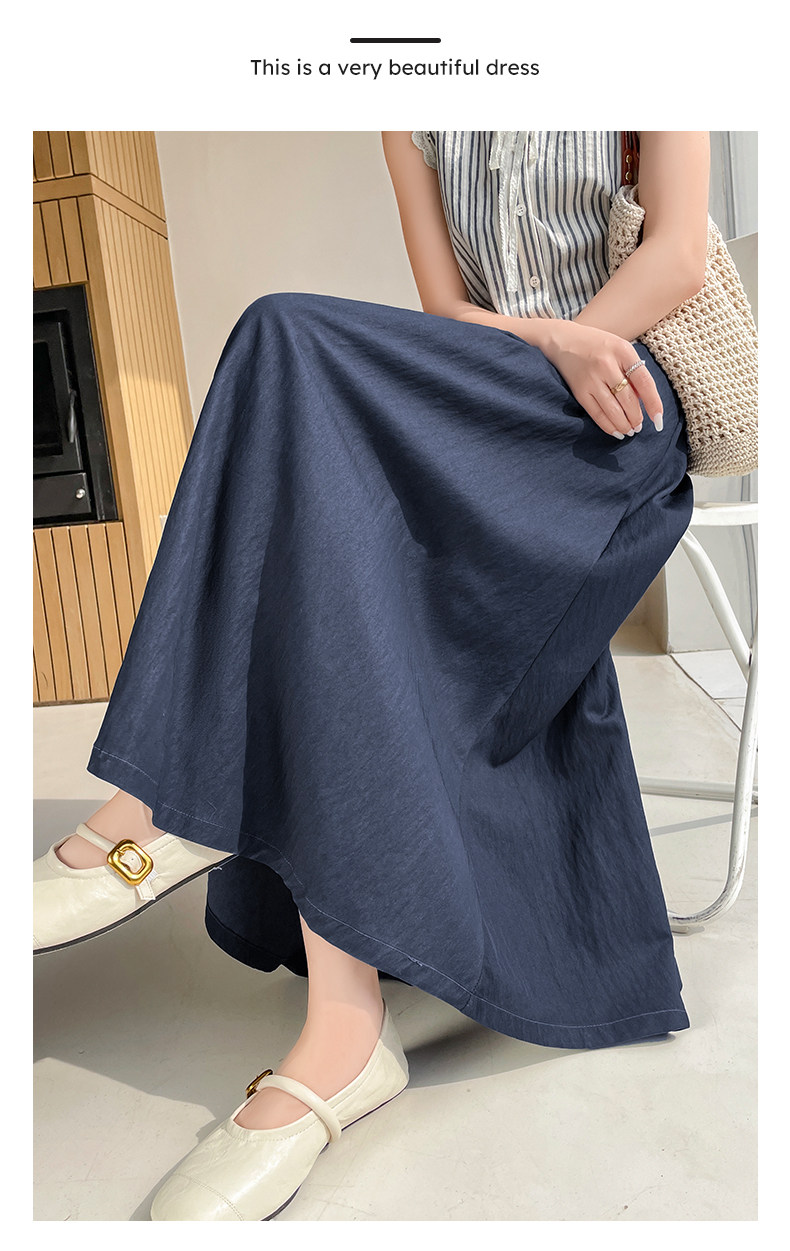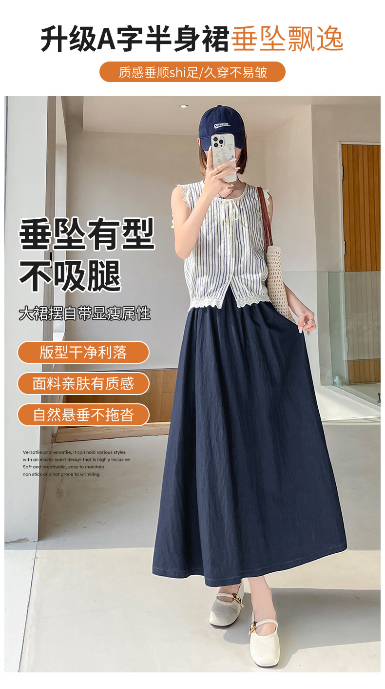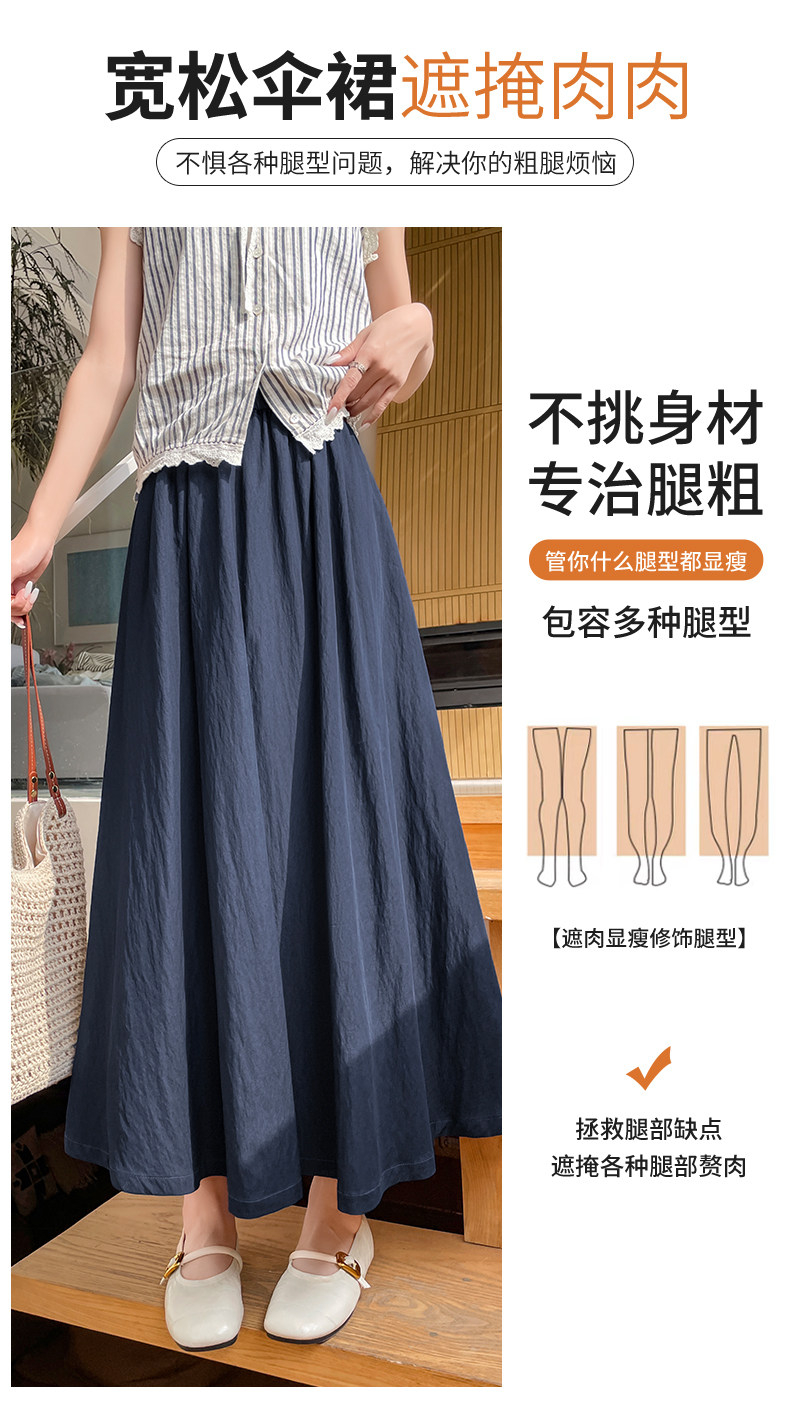 拉夏貝爾藏青色冰絲半身裙女夏薄款高腰顯瘦傘裙a字中長款山本裙