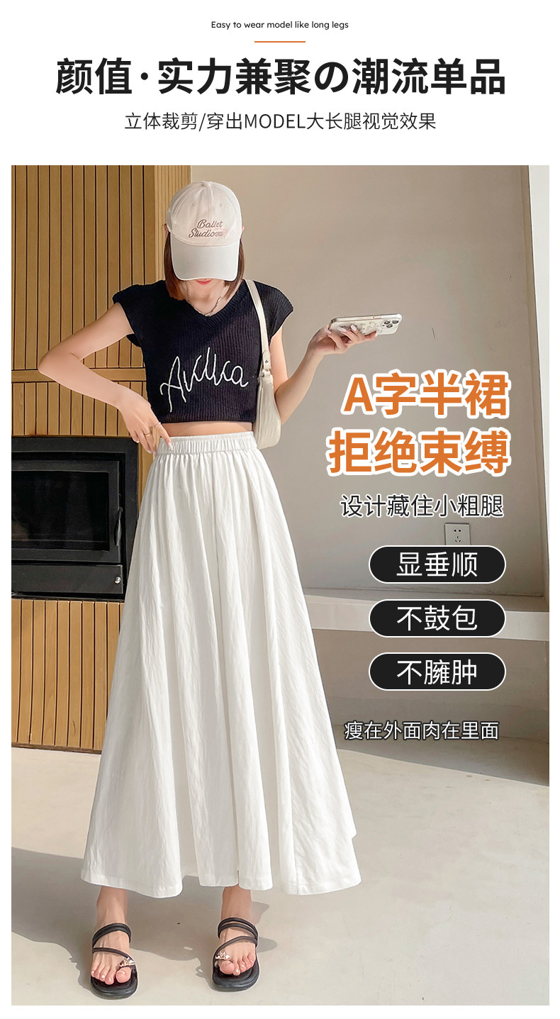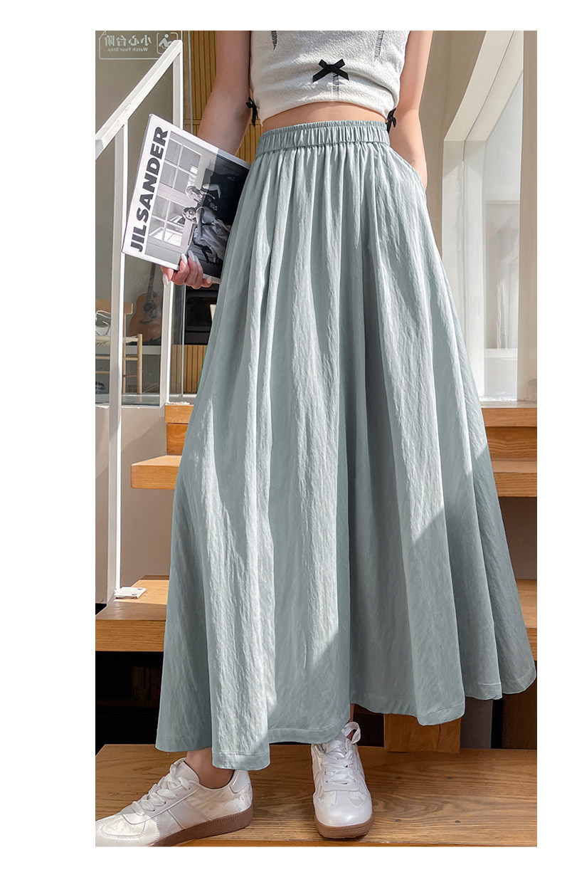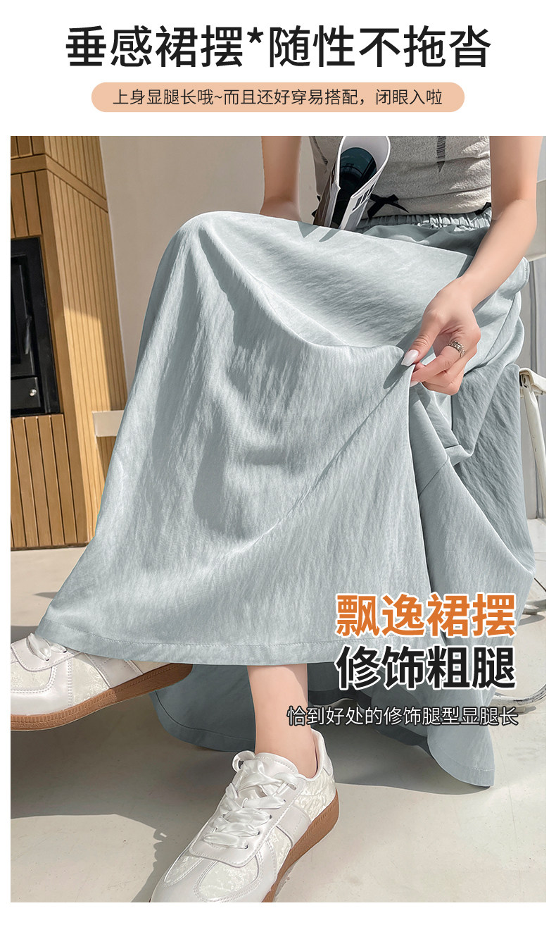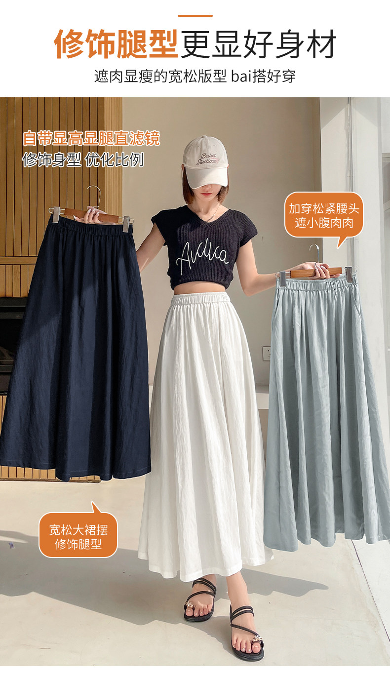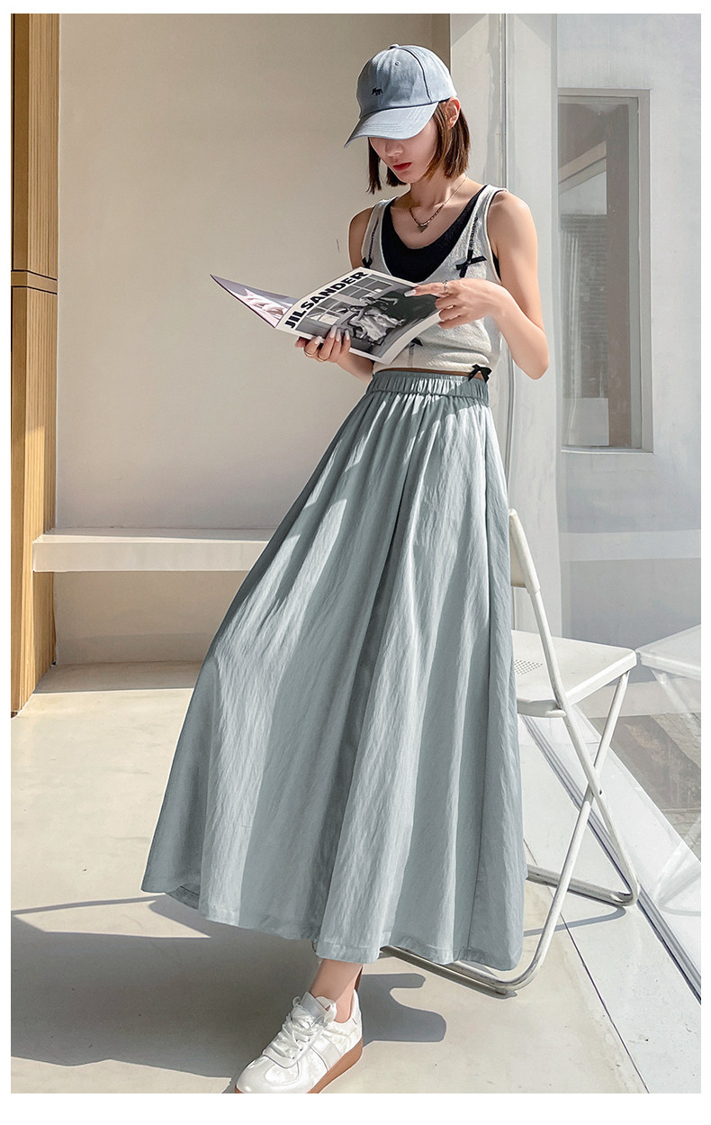 拉夏貝爾藏青色冰絲半身裙女夏薄款高腰顯瘦傘裙a字中長款山本裙