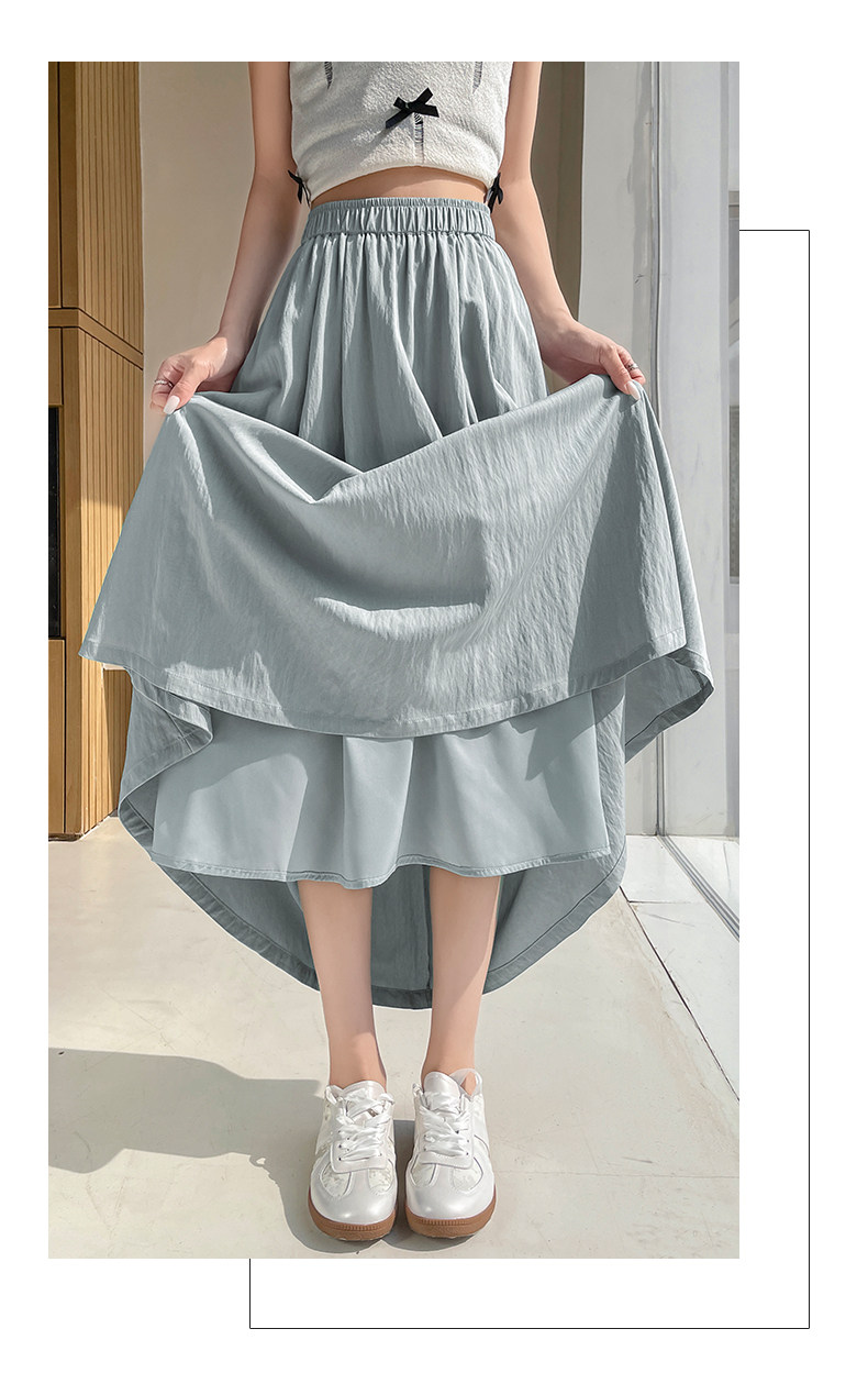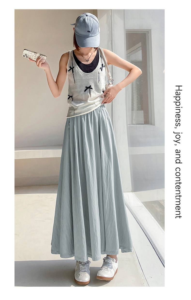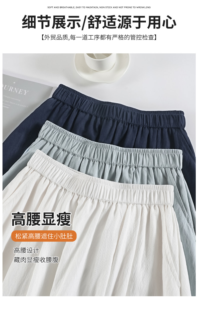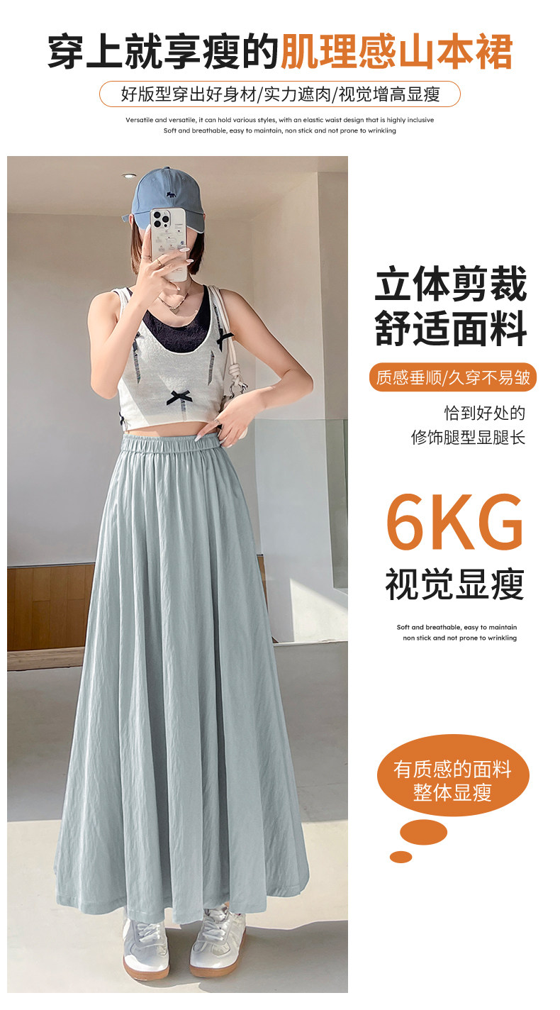 拉夏貝爾藏青色冰絲半身裙女夏薄款高腰顯瘦傘裙a字中長款山本裙