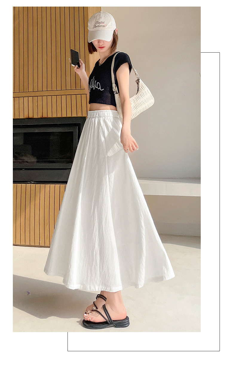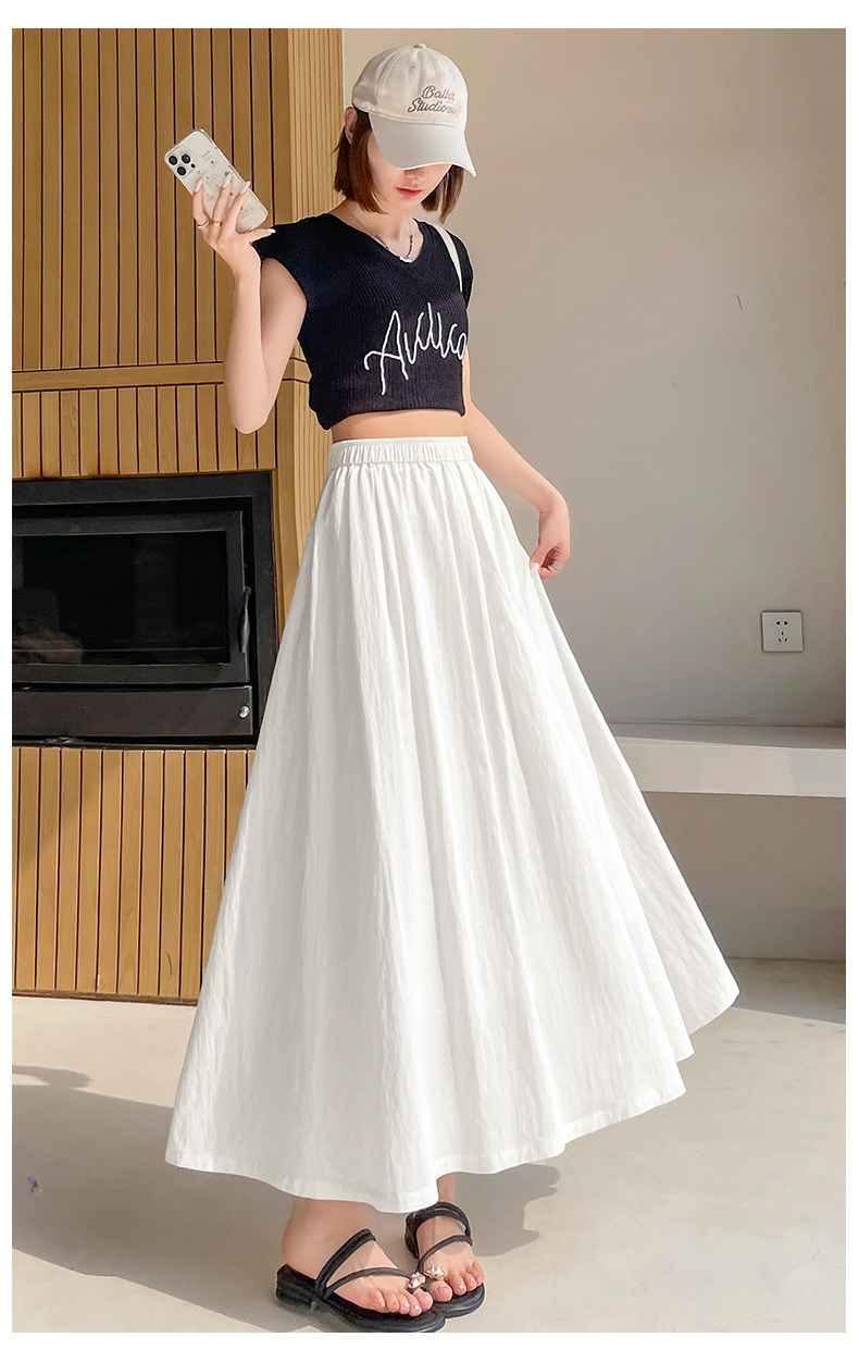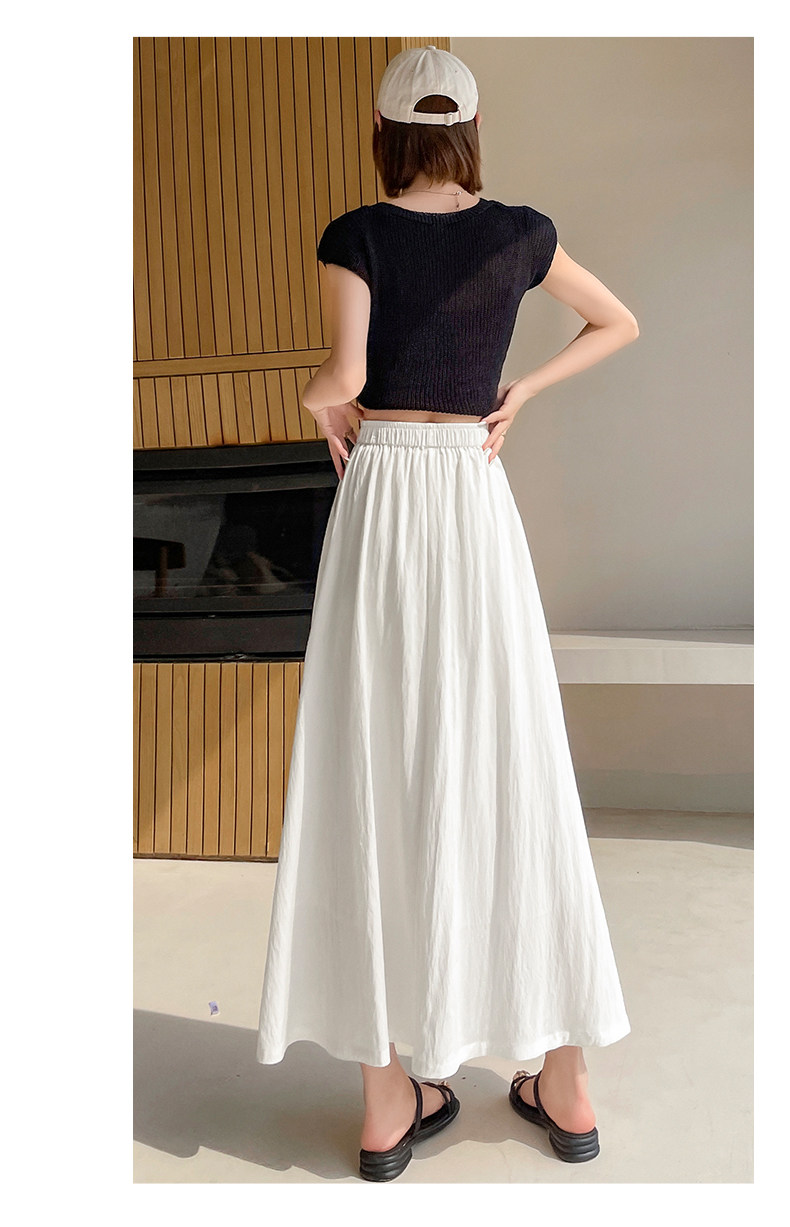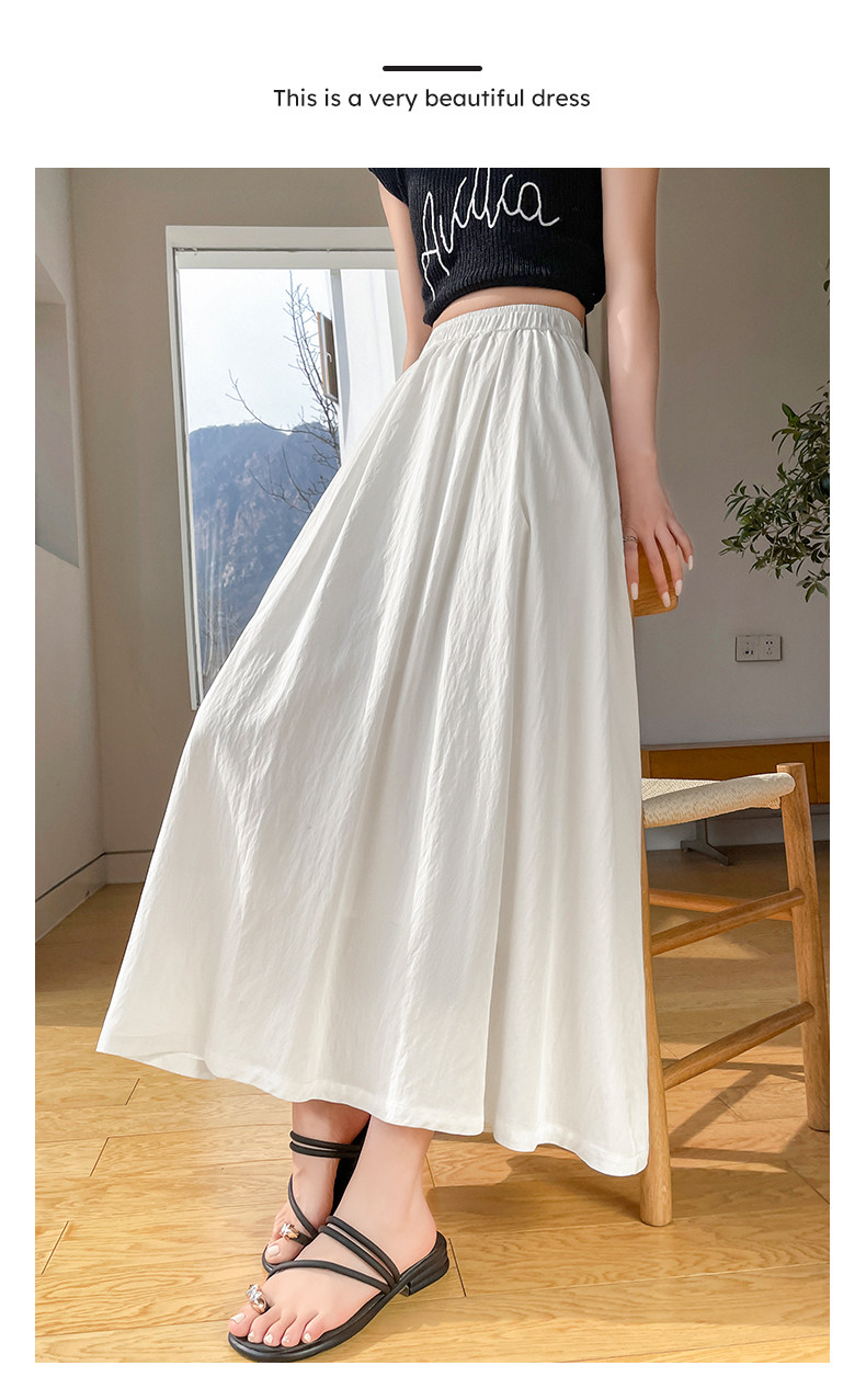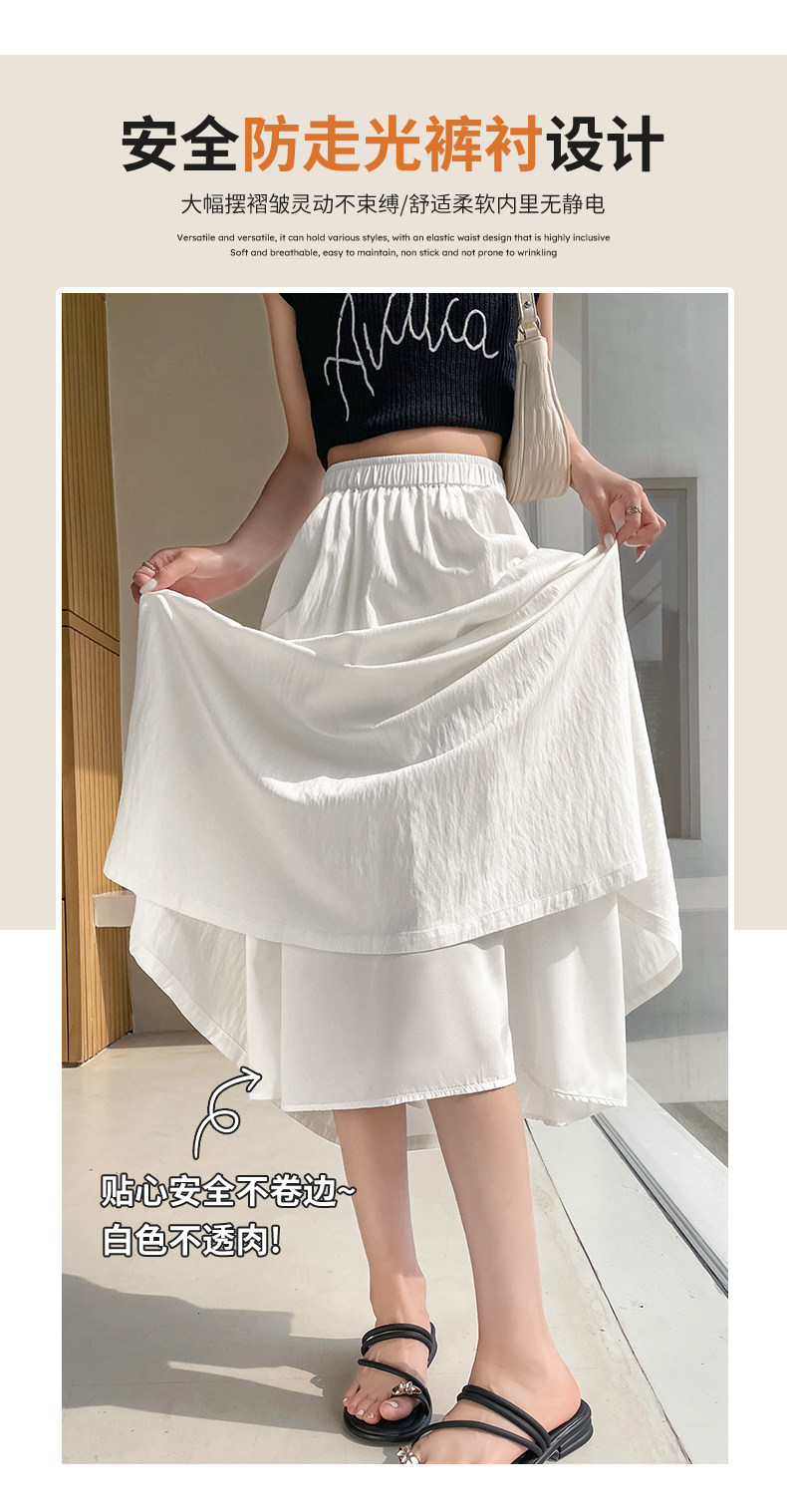 拉夏貝爾藏青色冰絲半身裙女夏薄款高腰顯瘦傘裙a字中長款山本裙