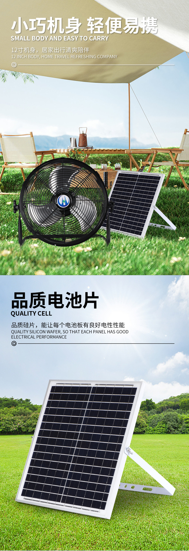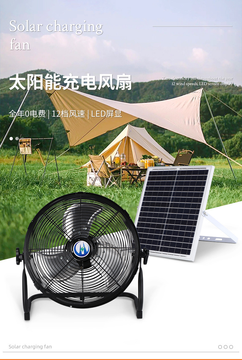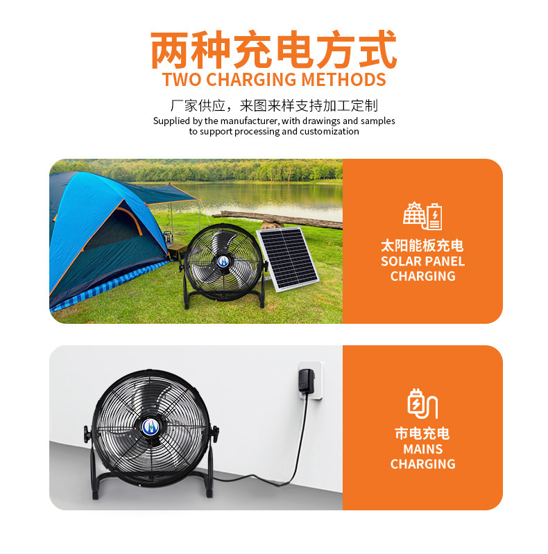 超長續航48小時太陽能充電趴地扇無聲家用戶外釣魚露營擺攤可移動