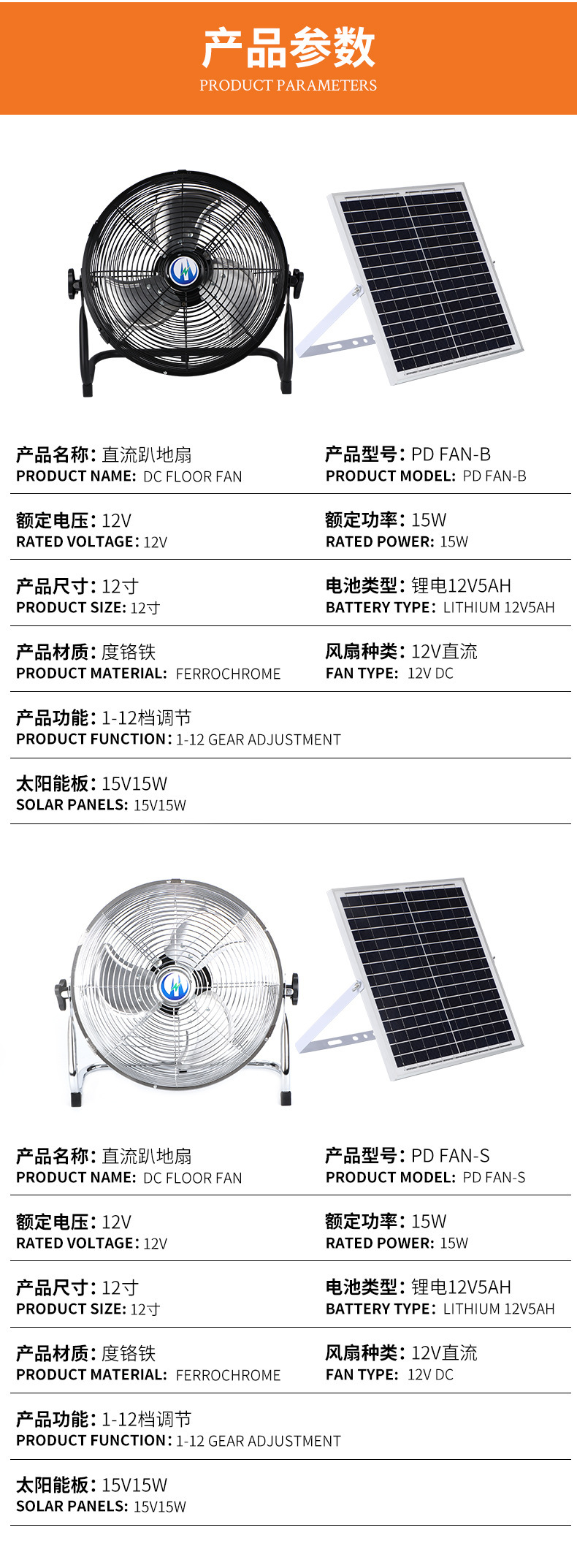 | 産品規格 | 12寸充電趴地扇 |