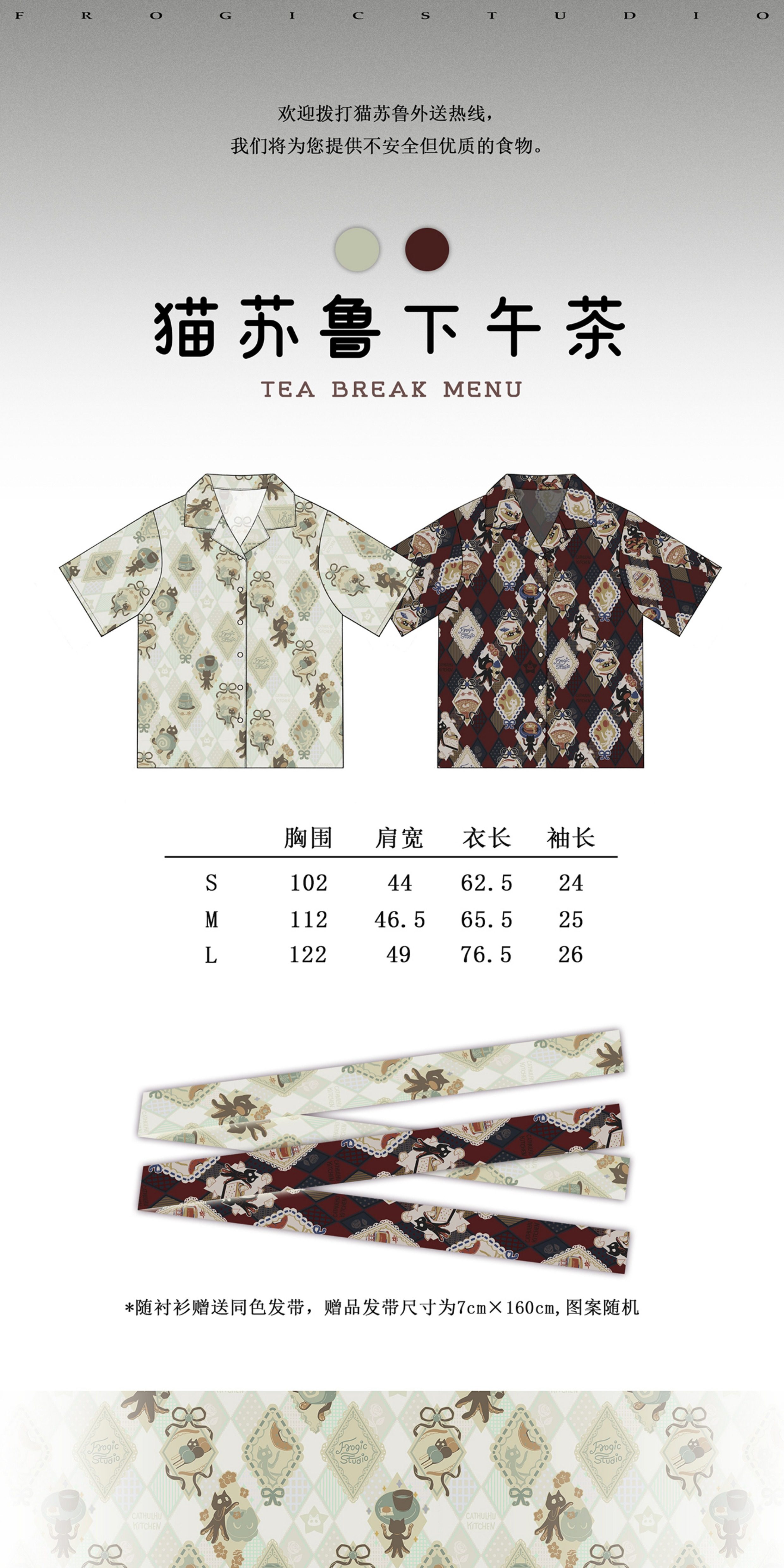 待補貨貓蘇魯下午茶·花襯衫·美式復古古巴領純棉·Frogic原創