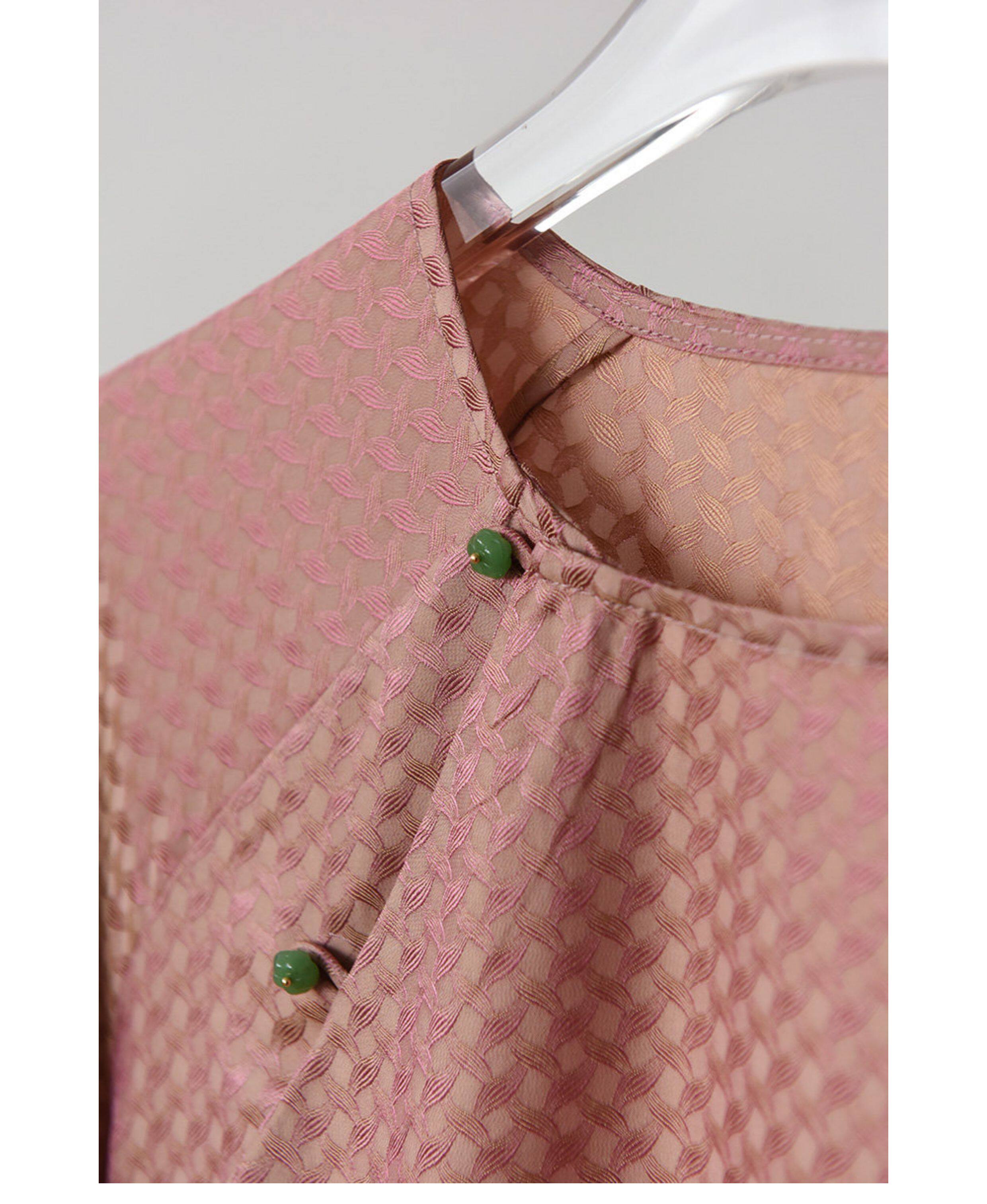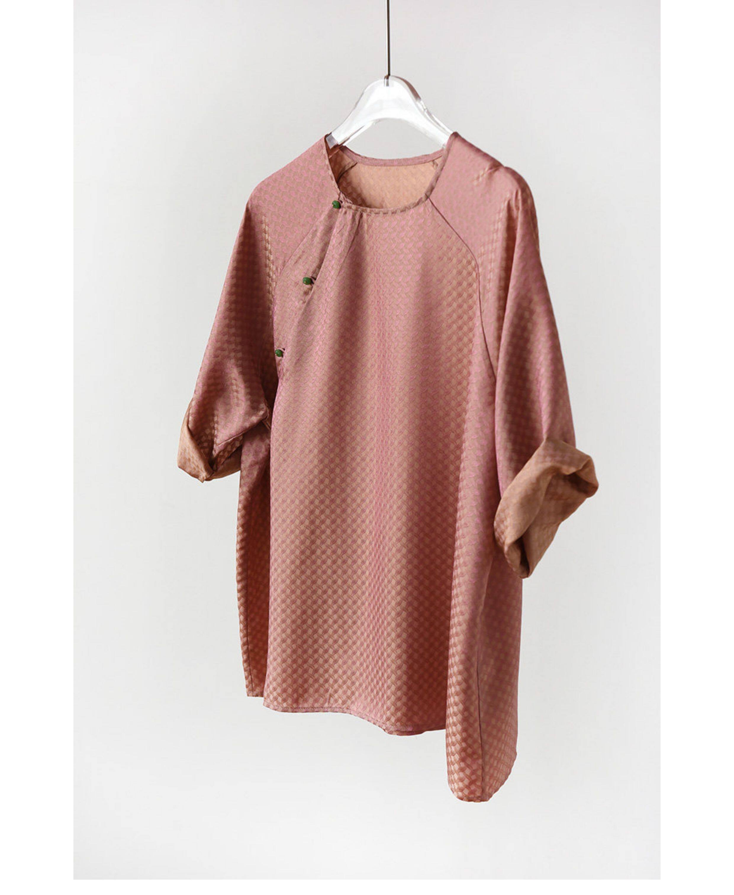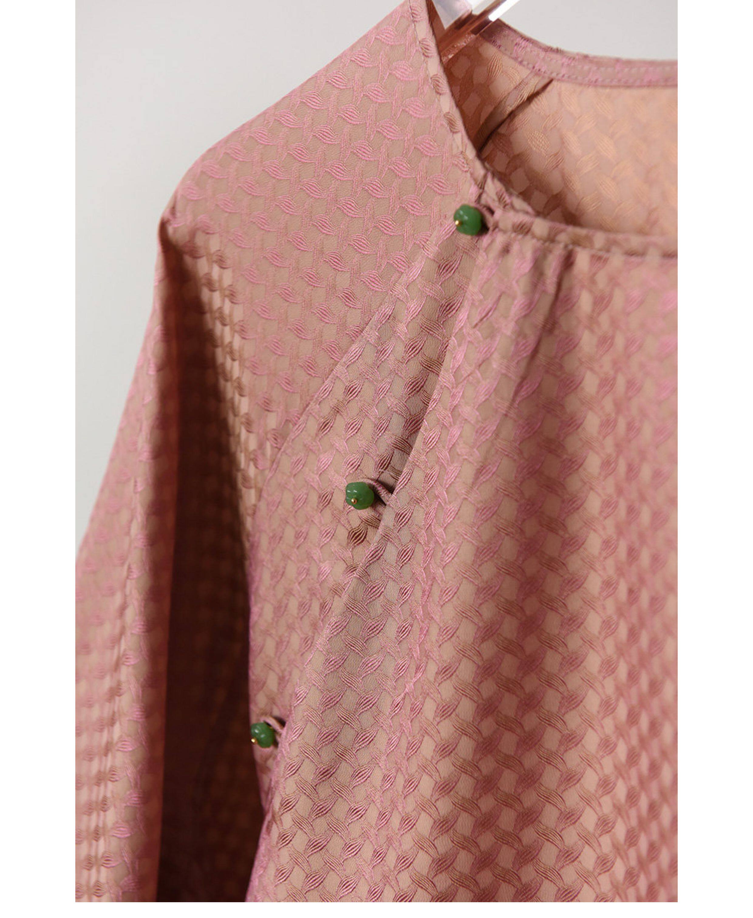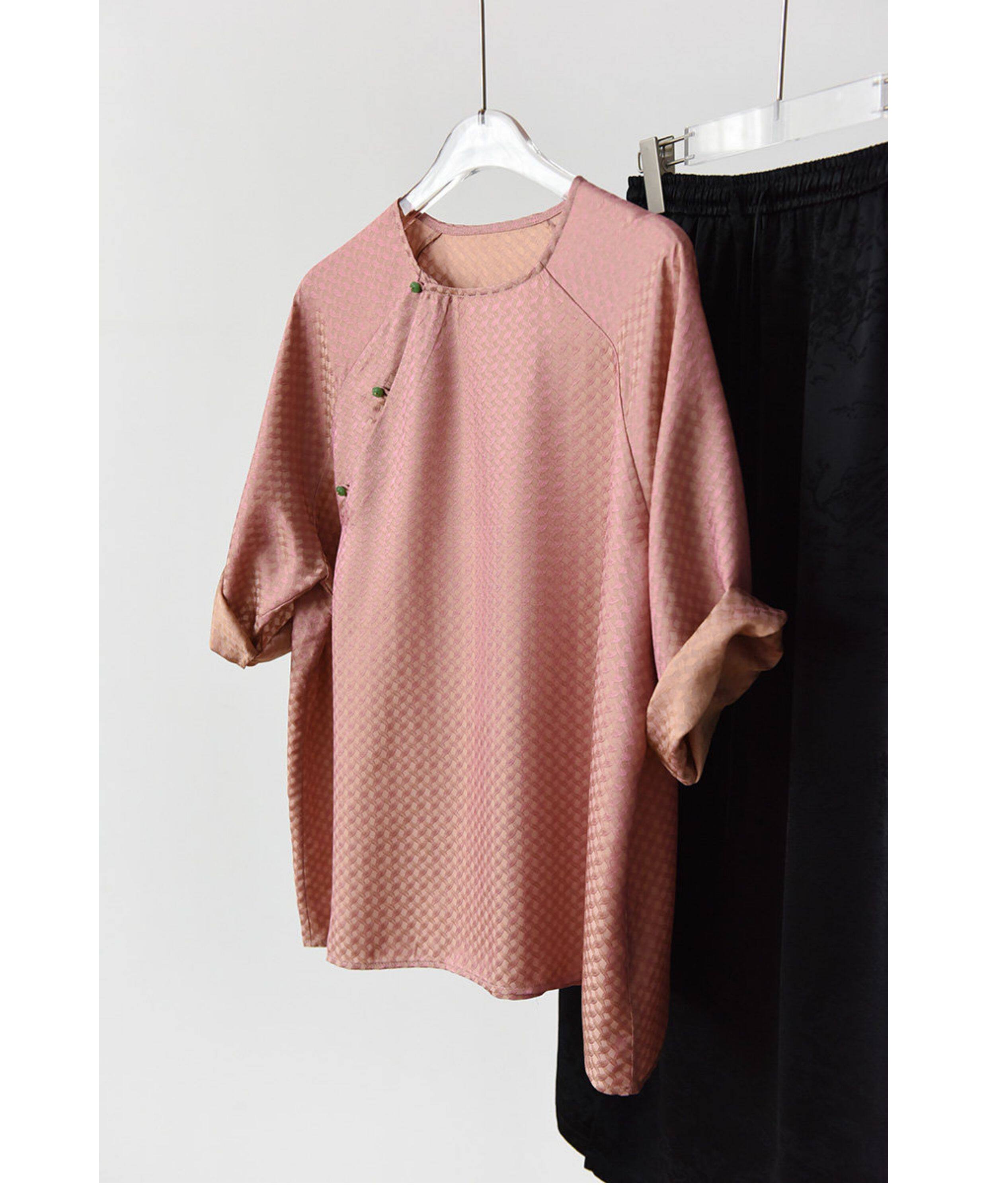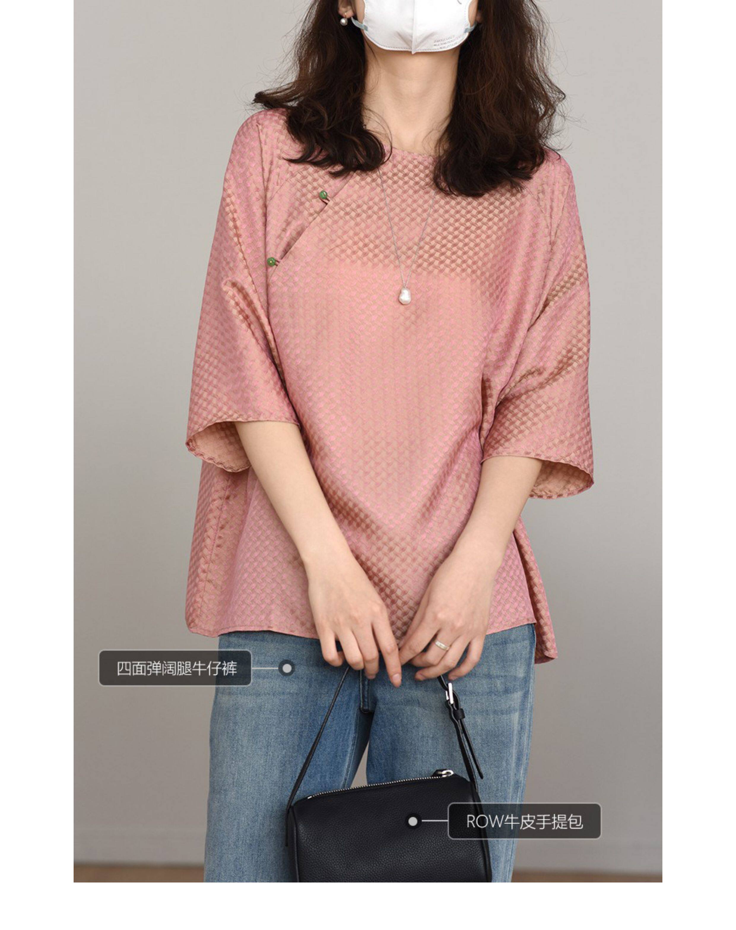 富貴閒人裝 新中式真絲提花斜門襟花朵玉石中袖襯衫 古風氣質款