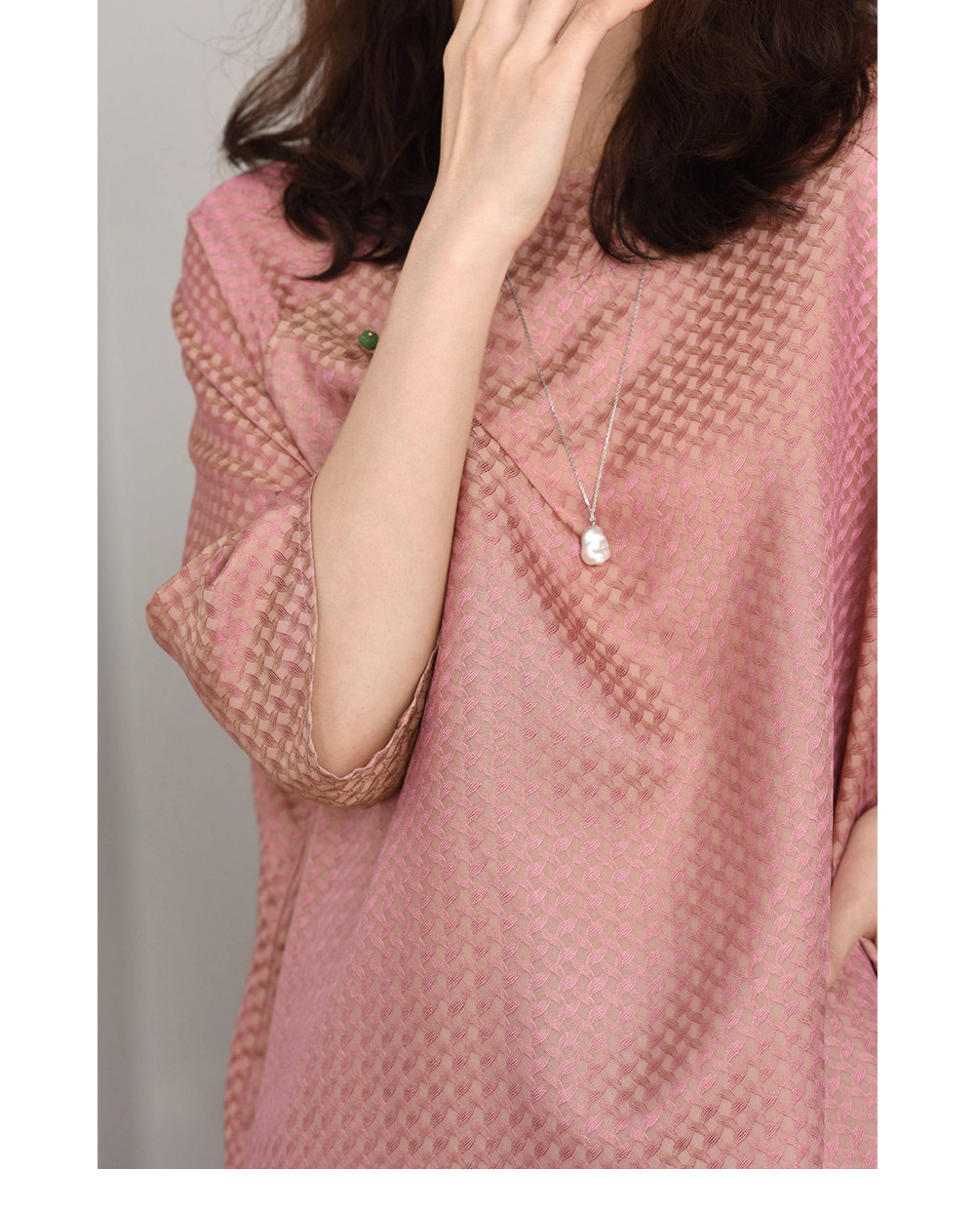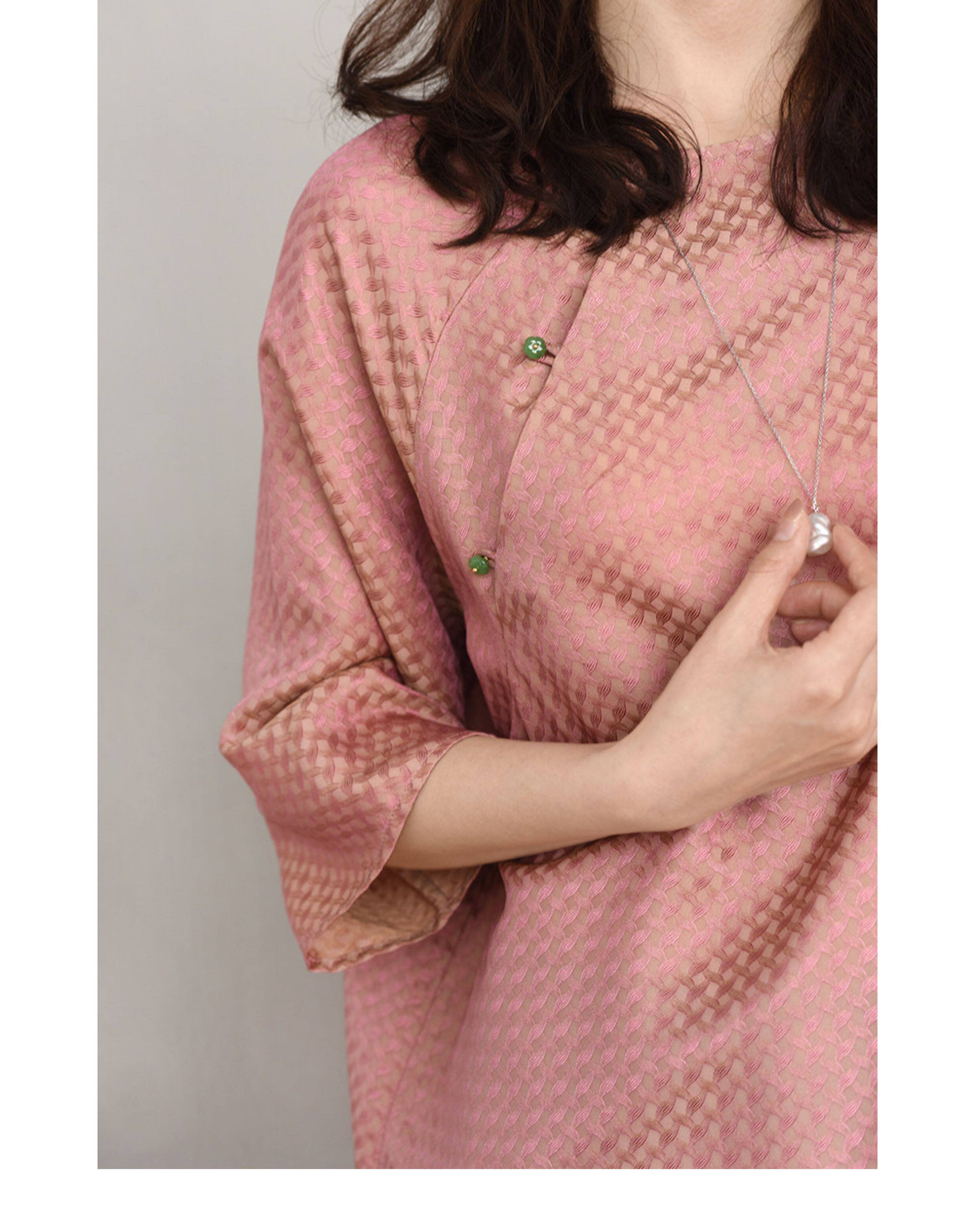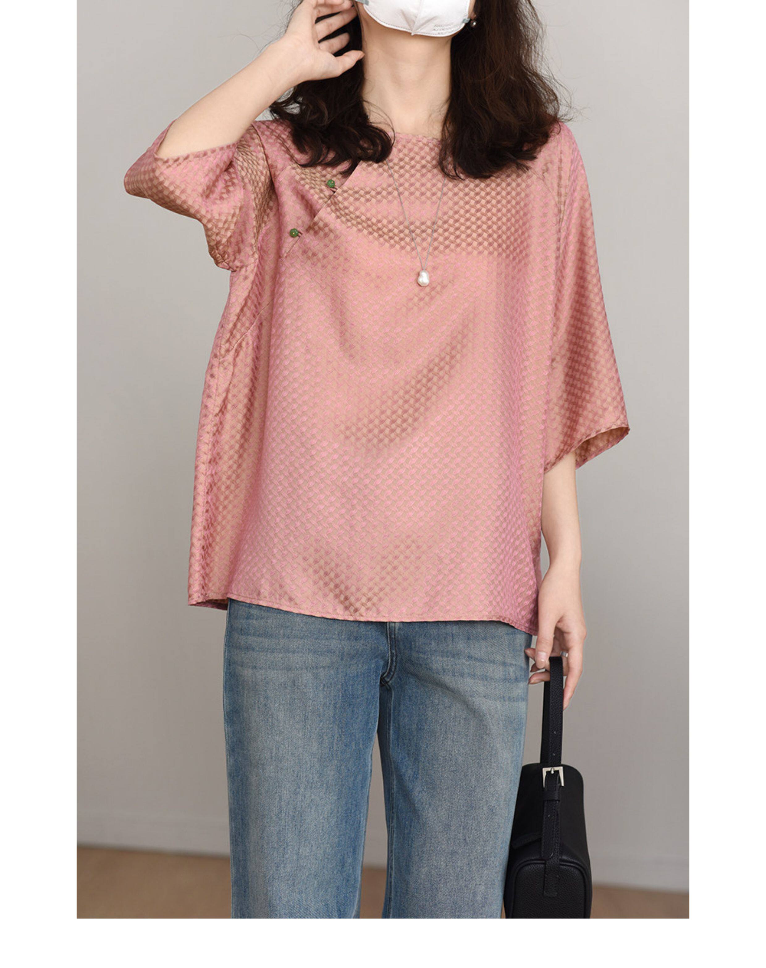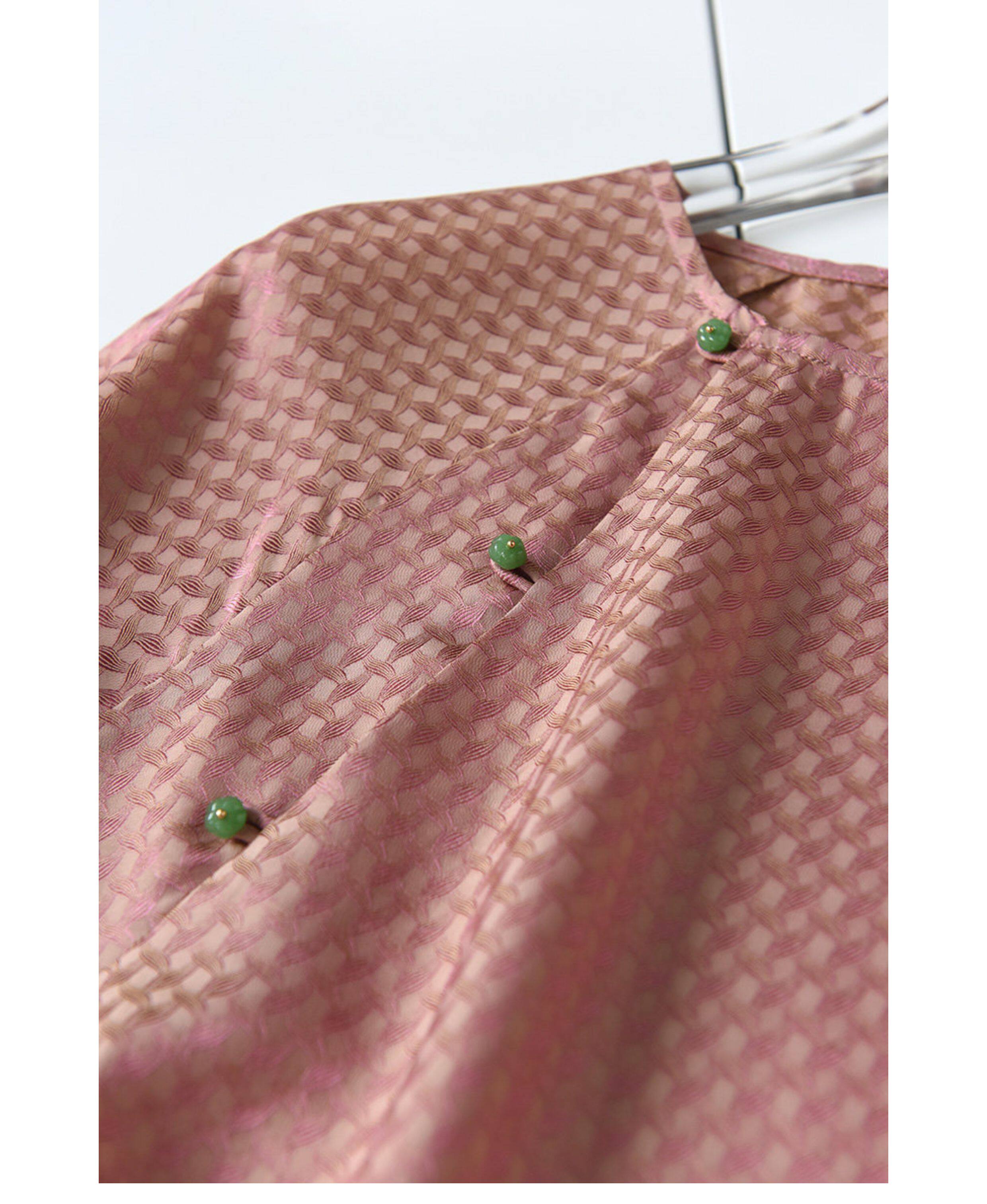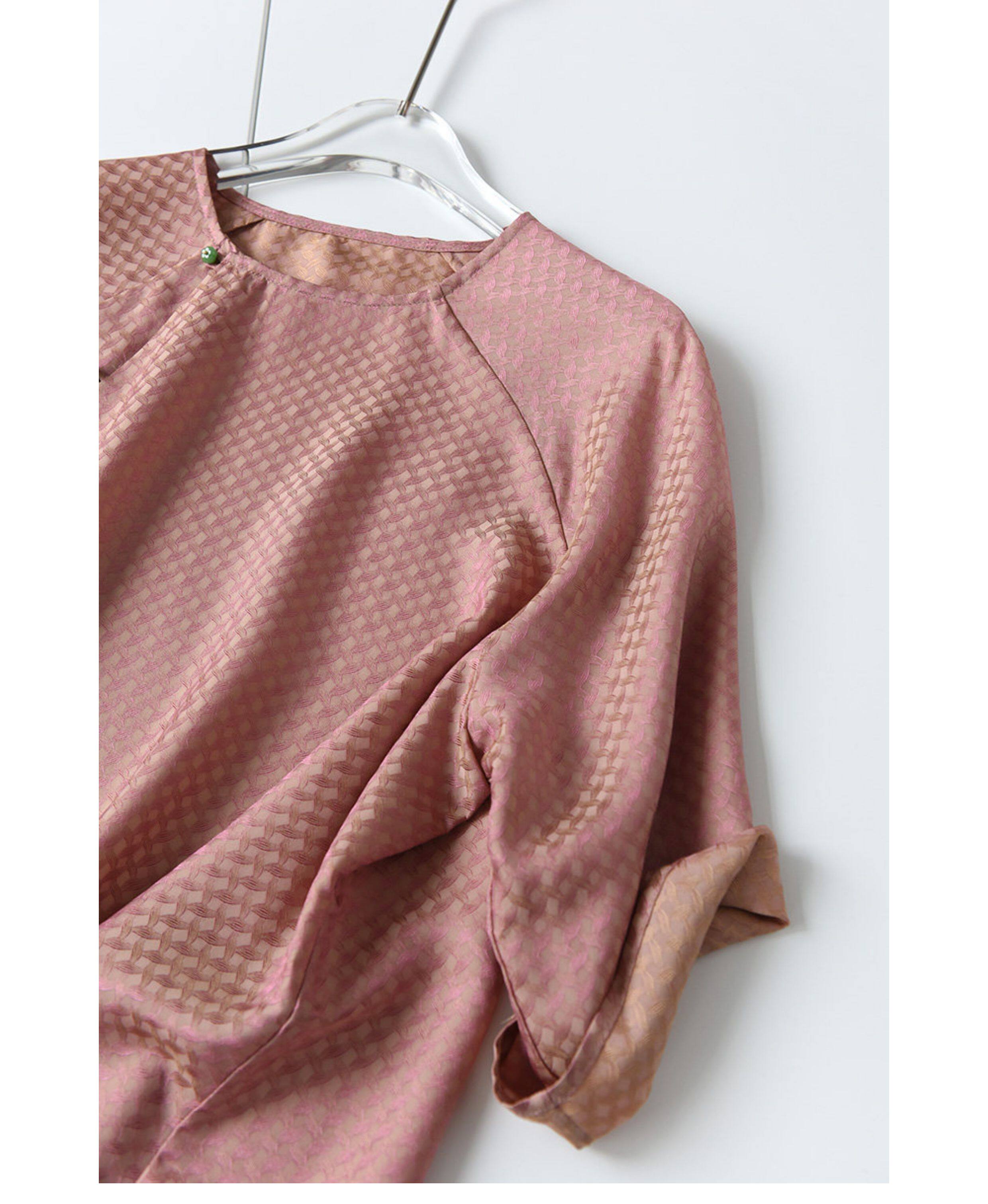 富貴閒人裝 新中式真絲提花斜門襟花朵玉石中袖襯衫 古風氣質款