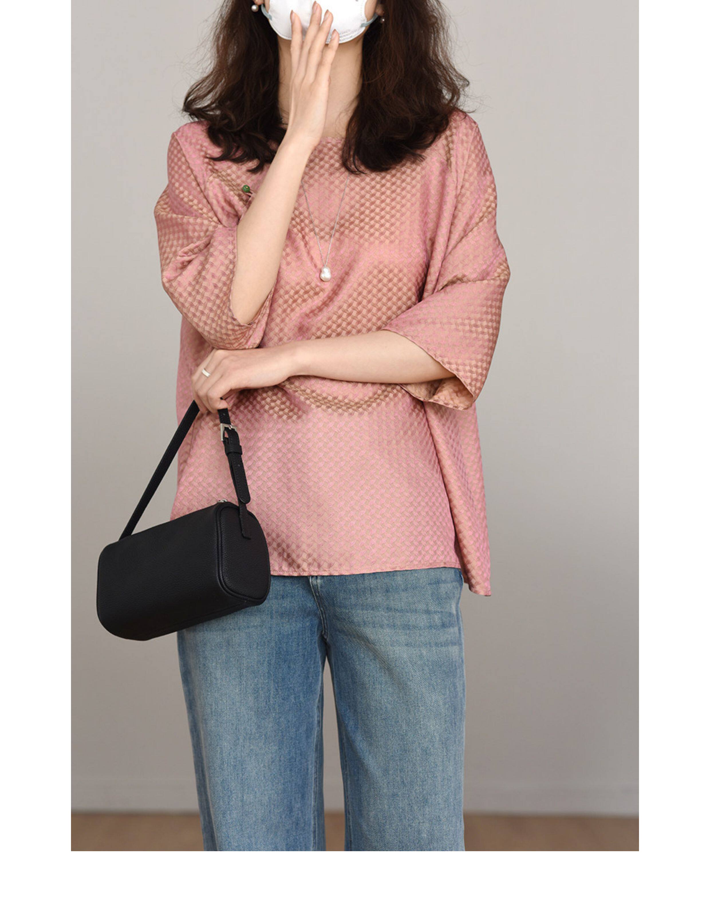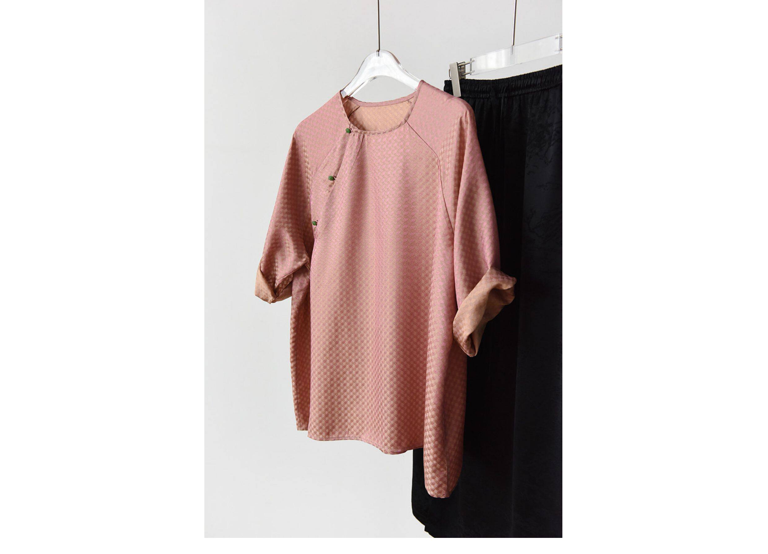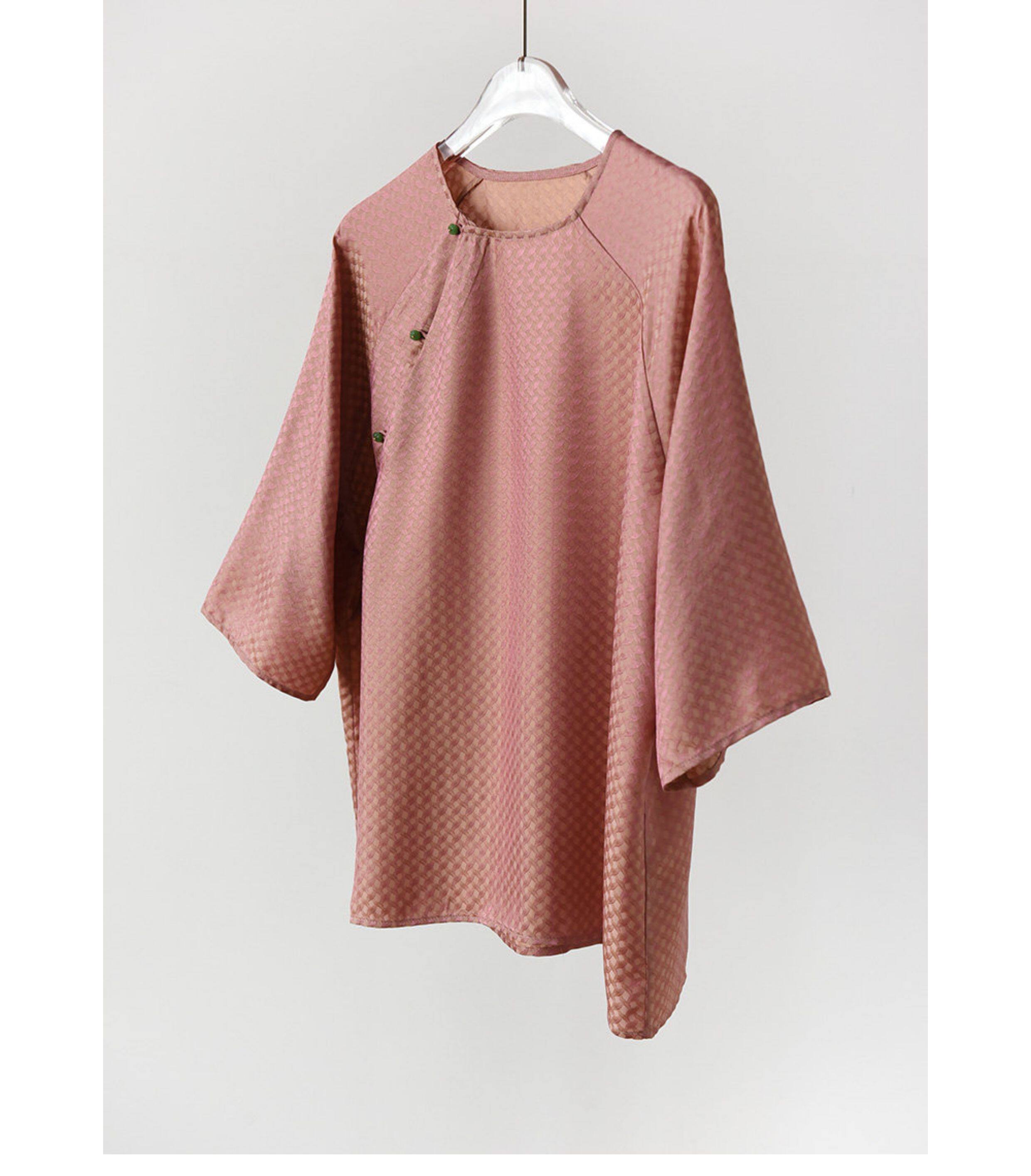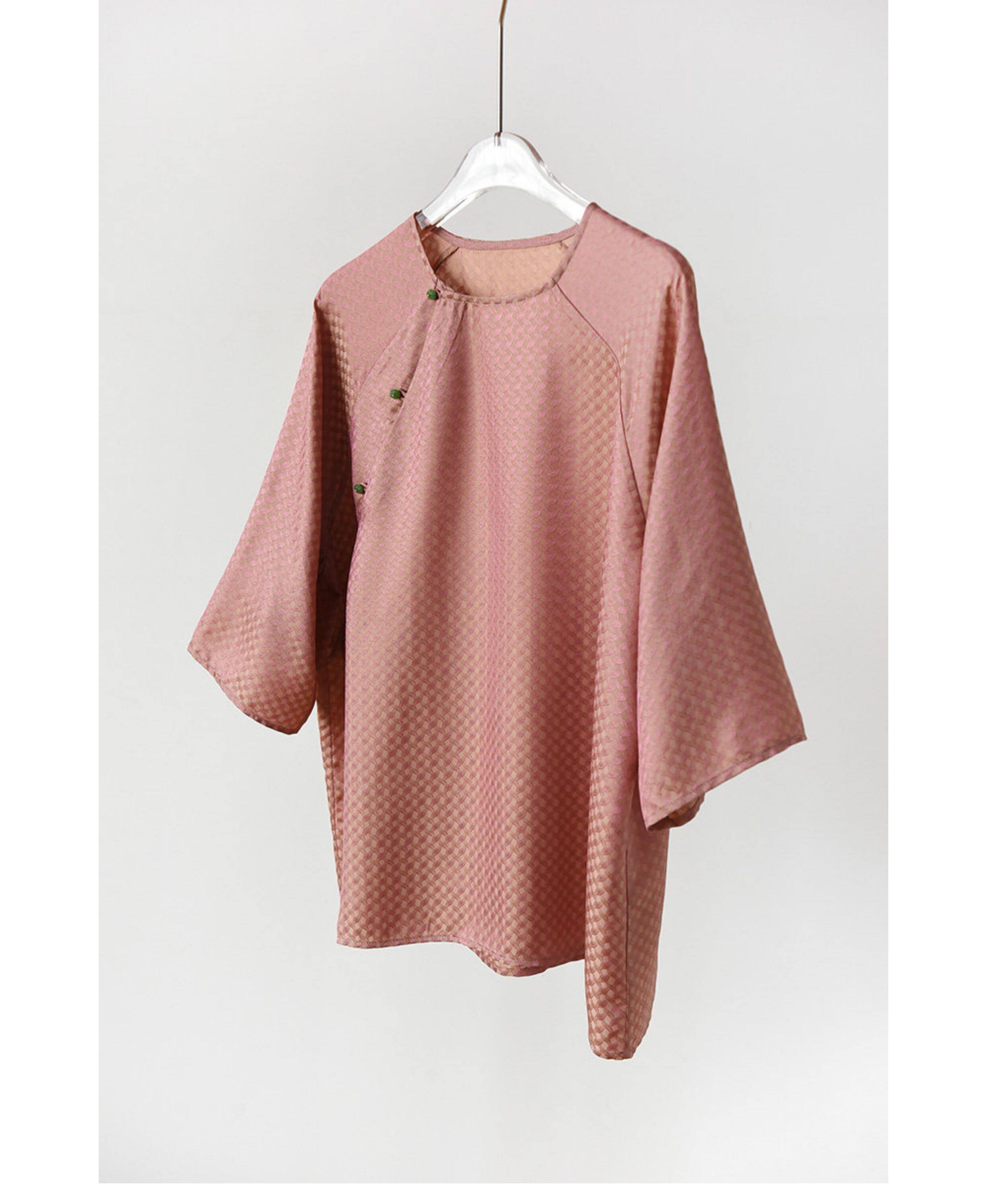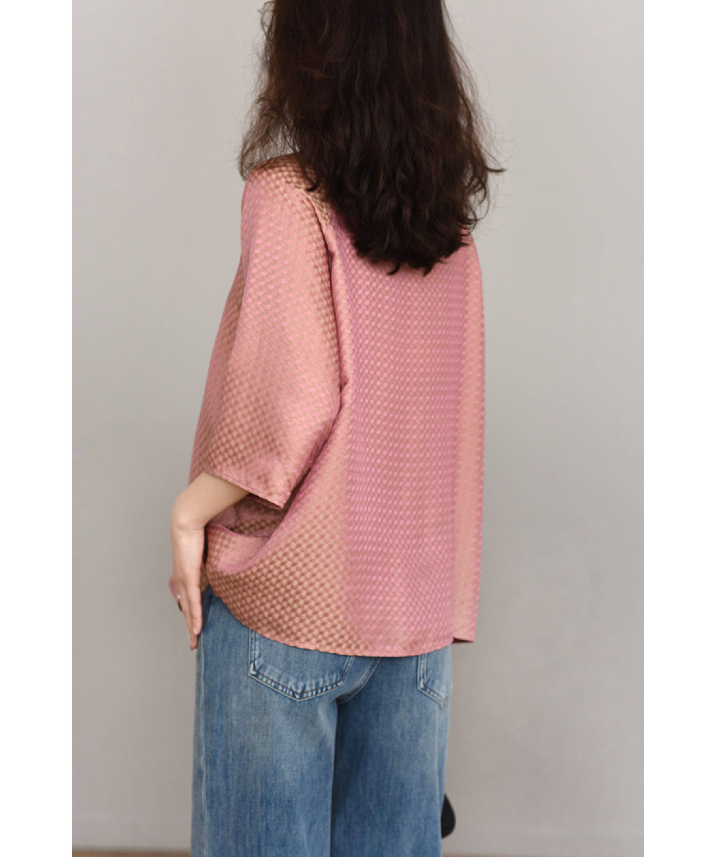 富貴閒人裝 新中式真絲提花斜門襟花朵玉石中袖襯衫 古風氣質款