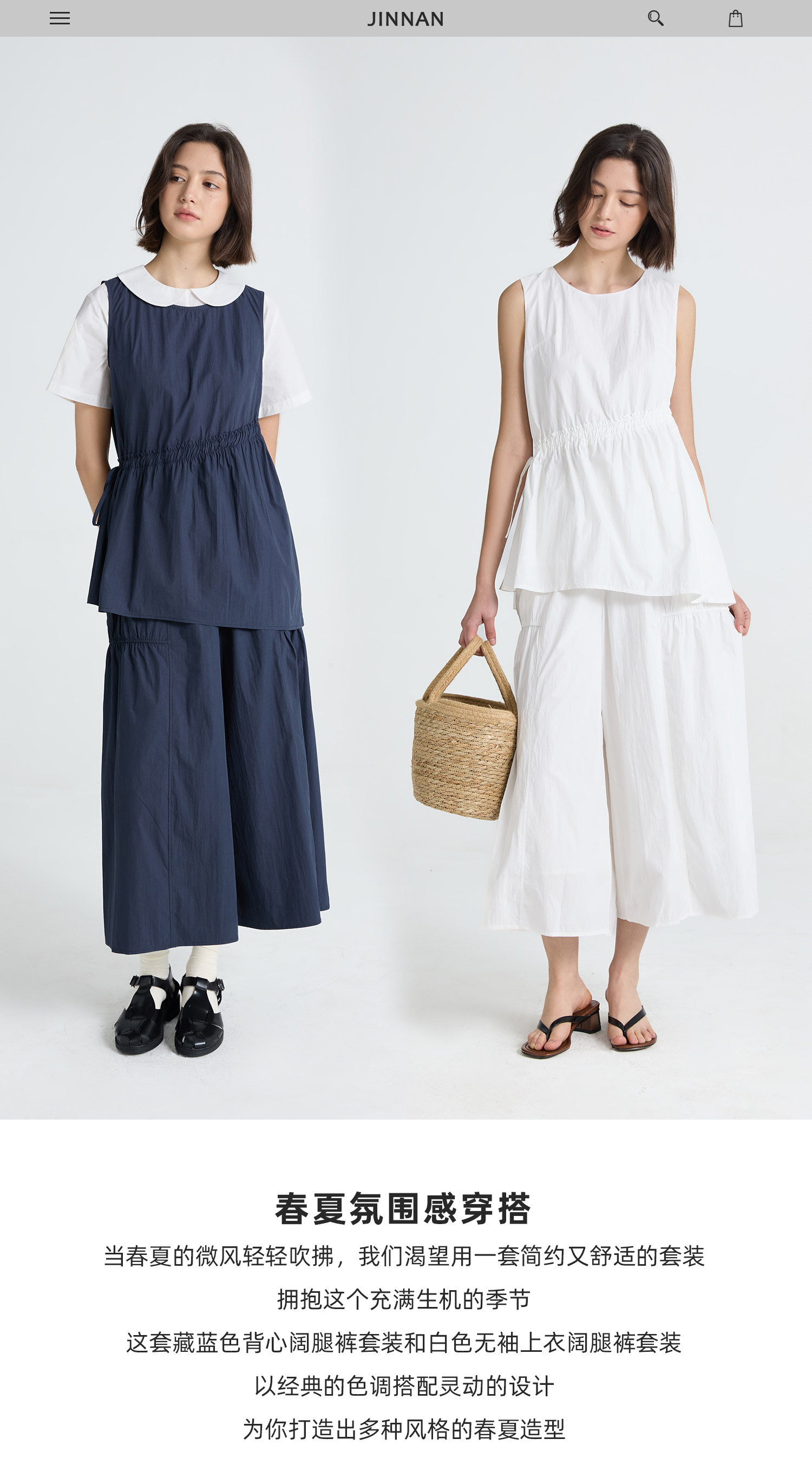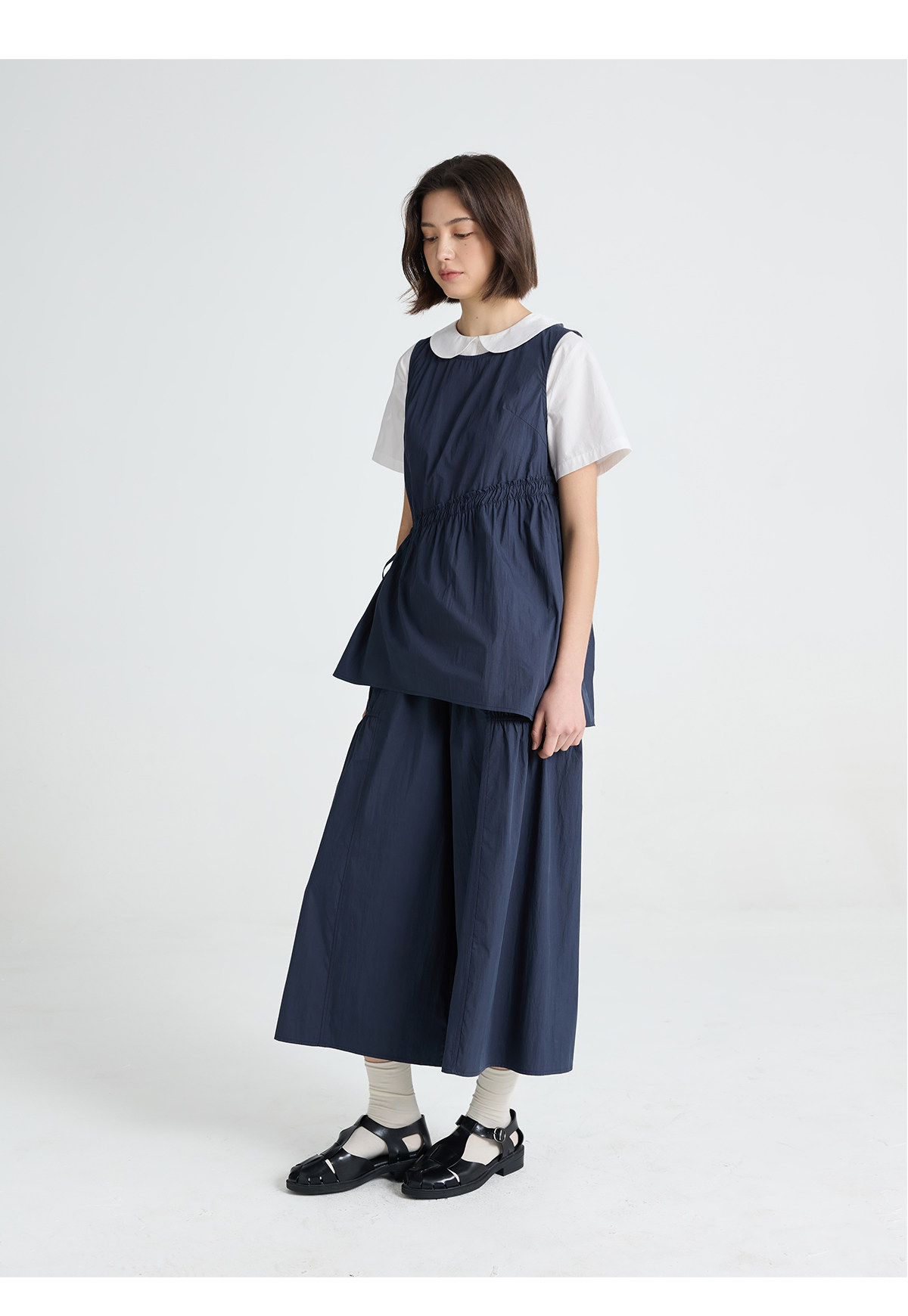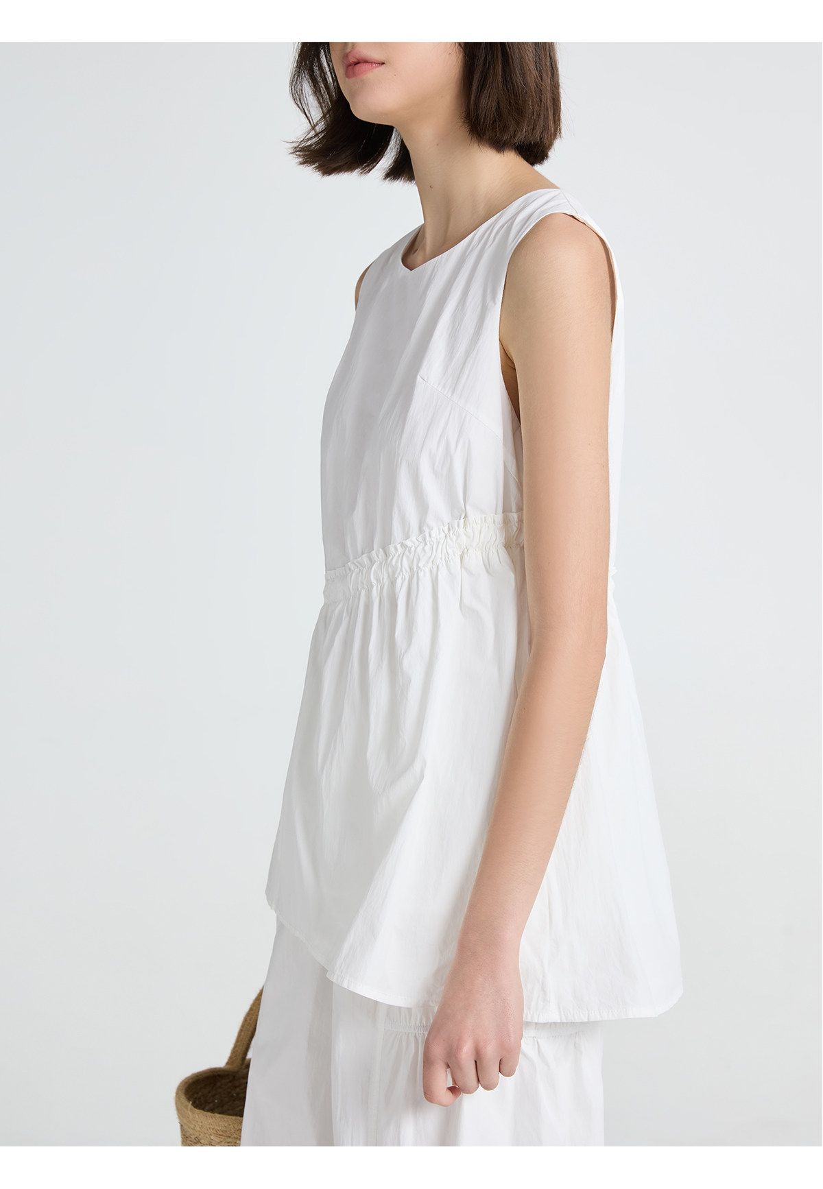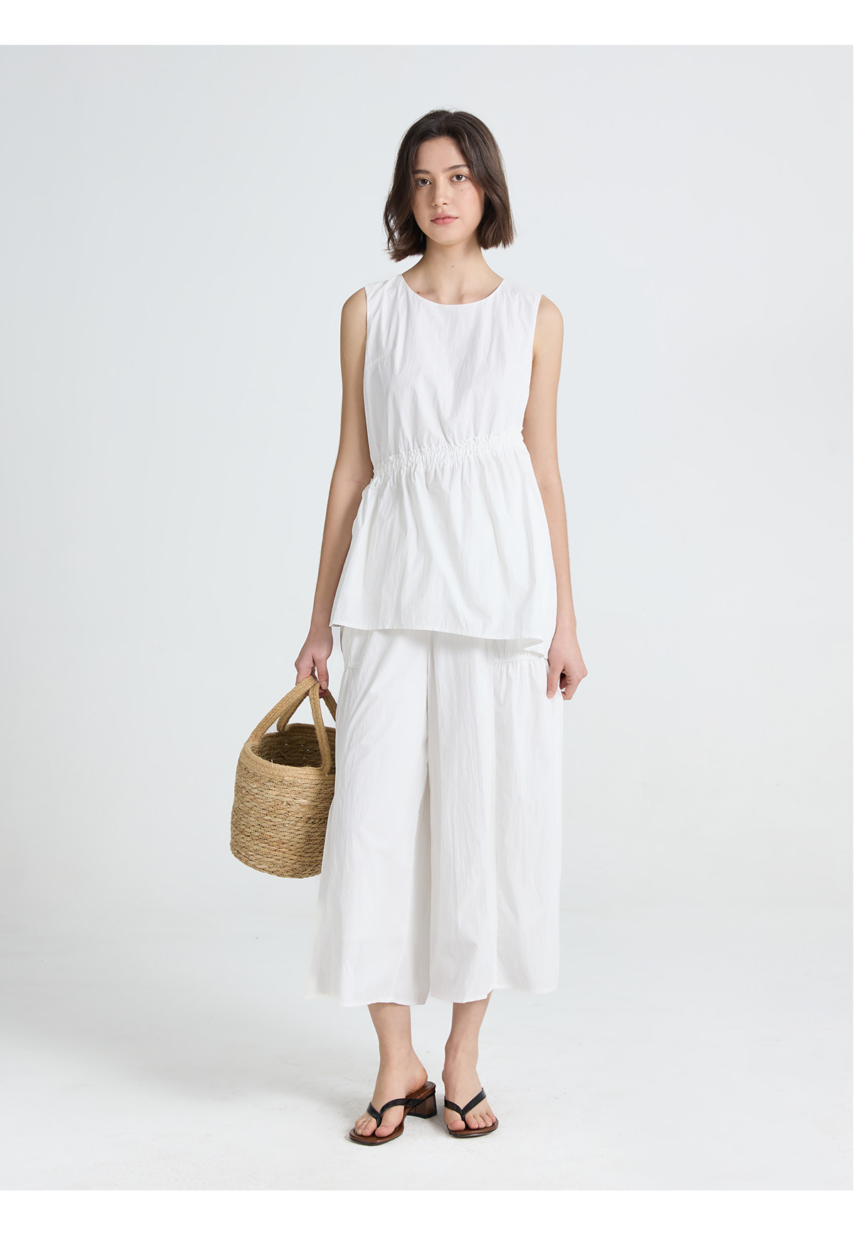 今南JINNAN 圓領無袖襯衫壓褶兩件套女濶腿直筒九分褲通勤套裝