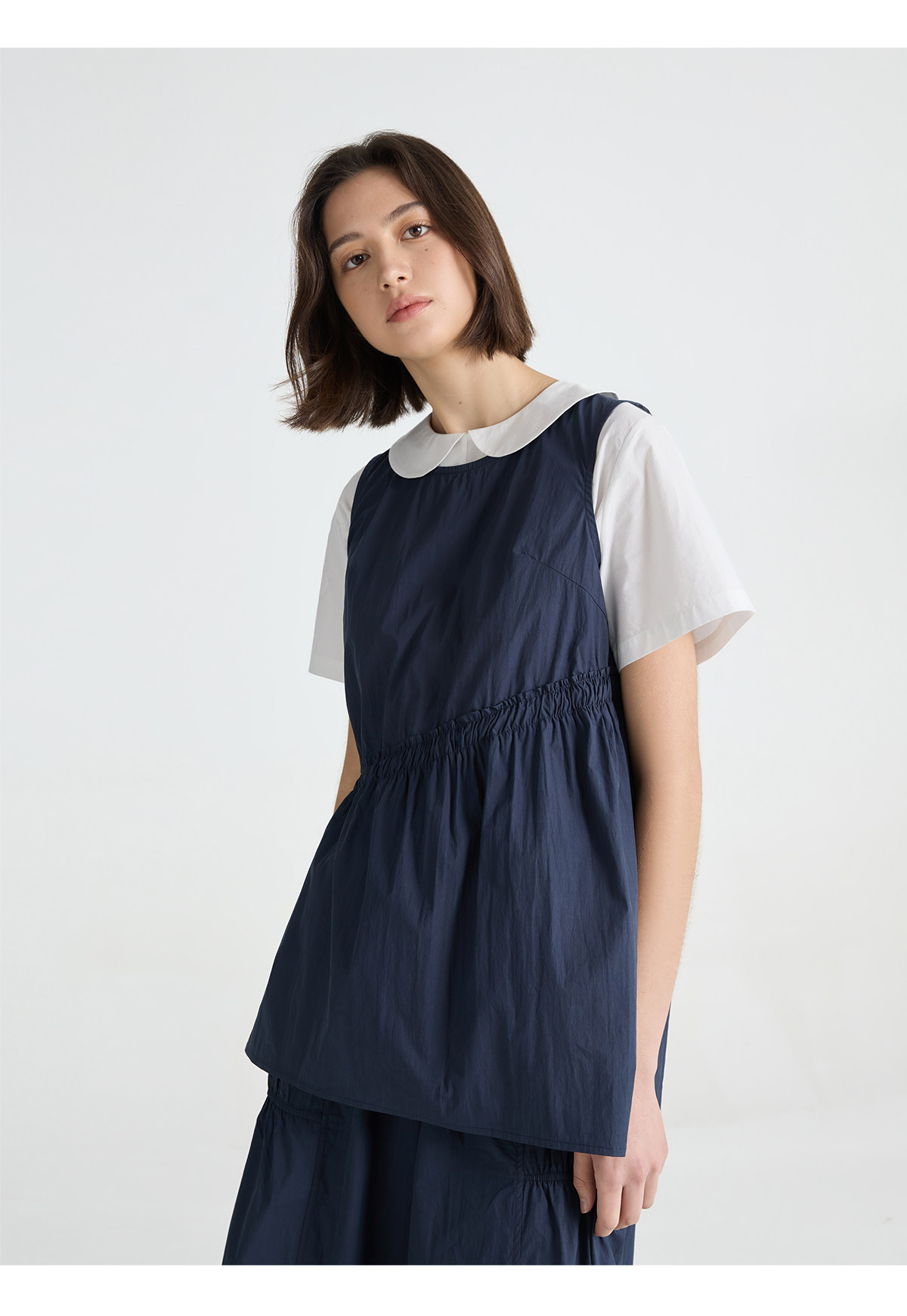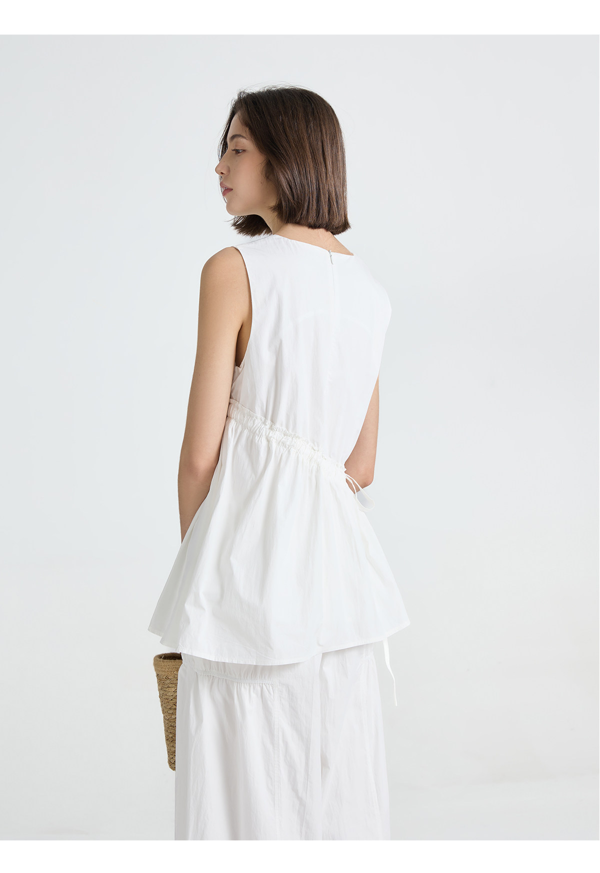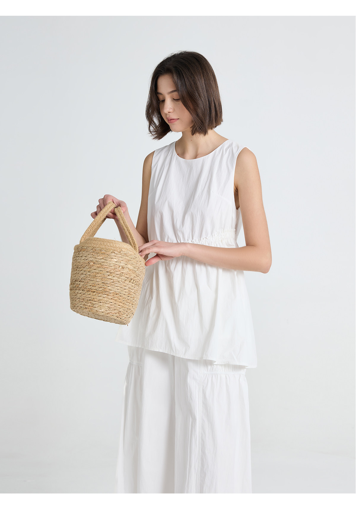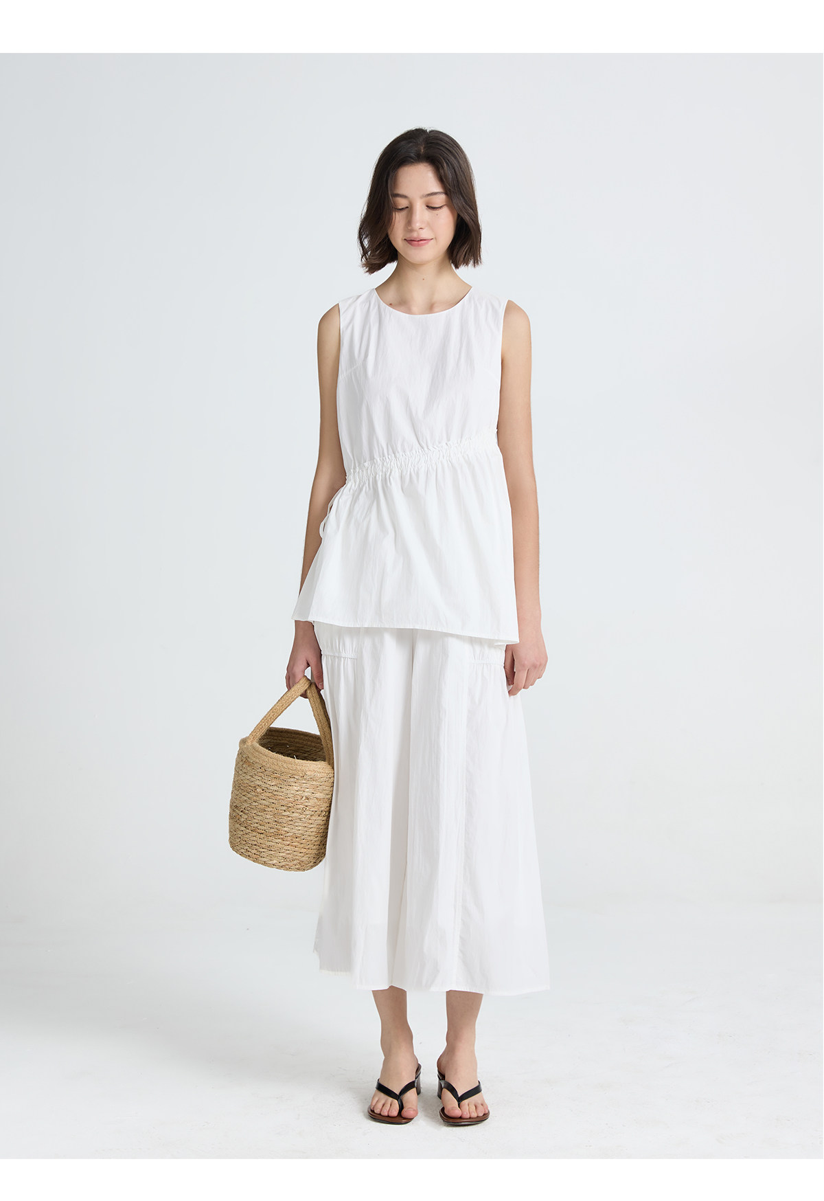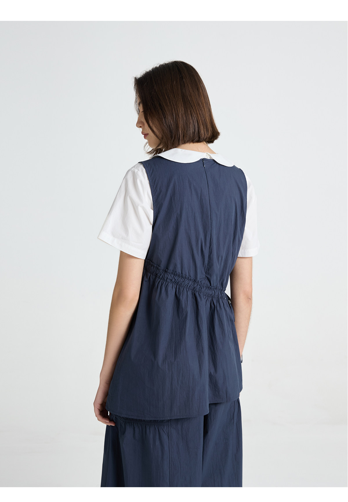今南JINNAN 圓領無袖襯衫壓褶兩件套女濶腿直筒九分褲通勤套裝