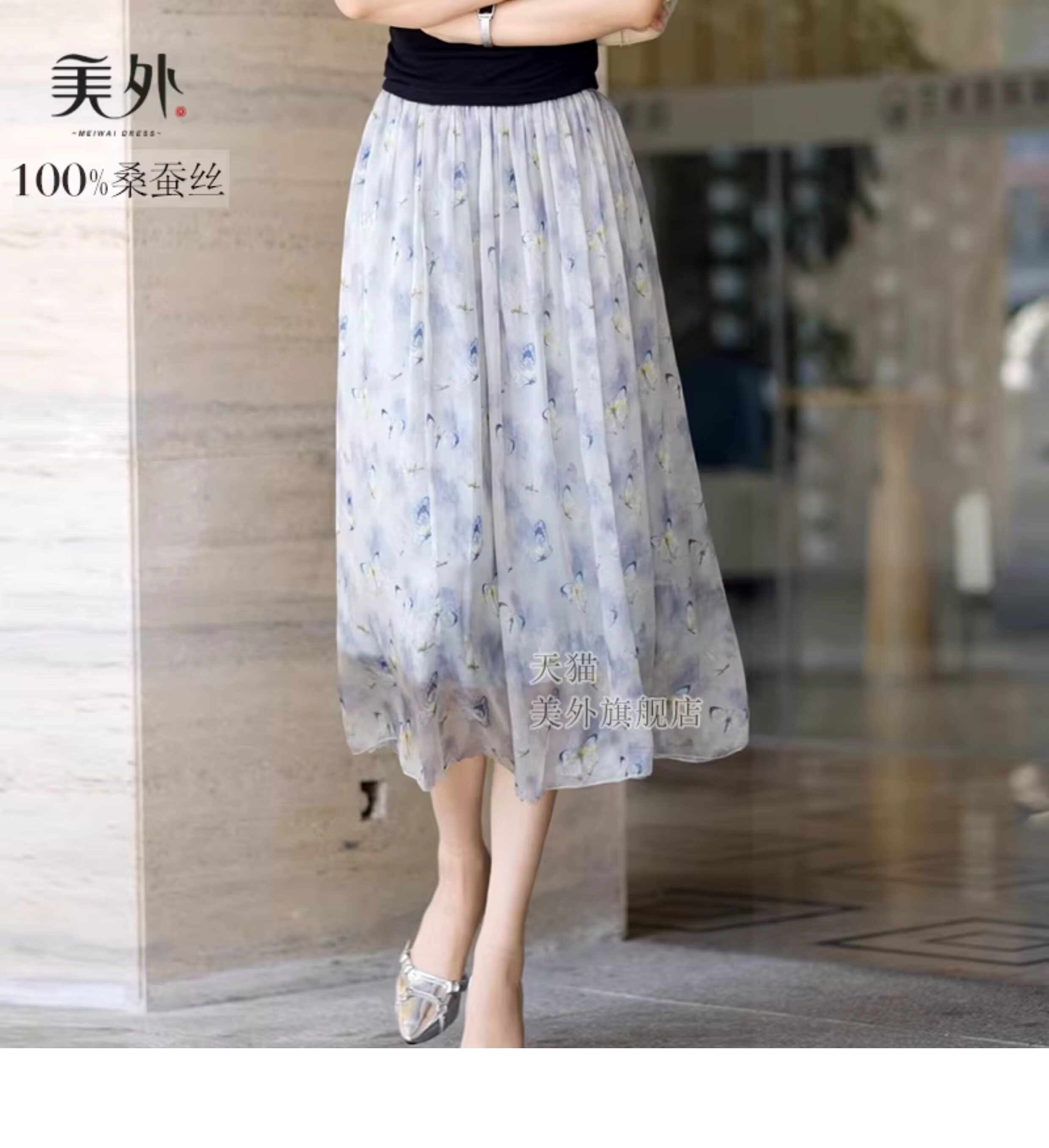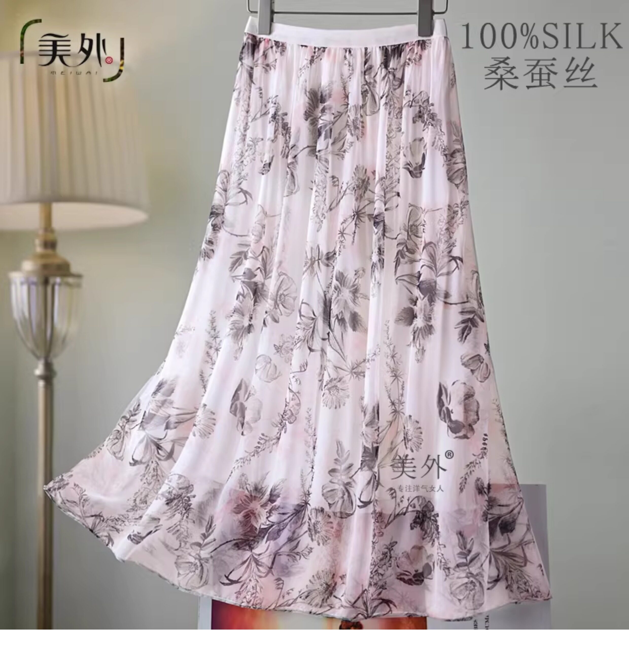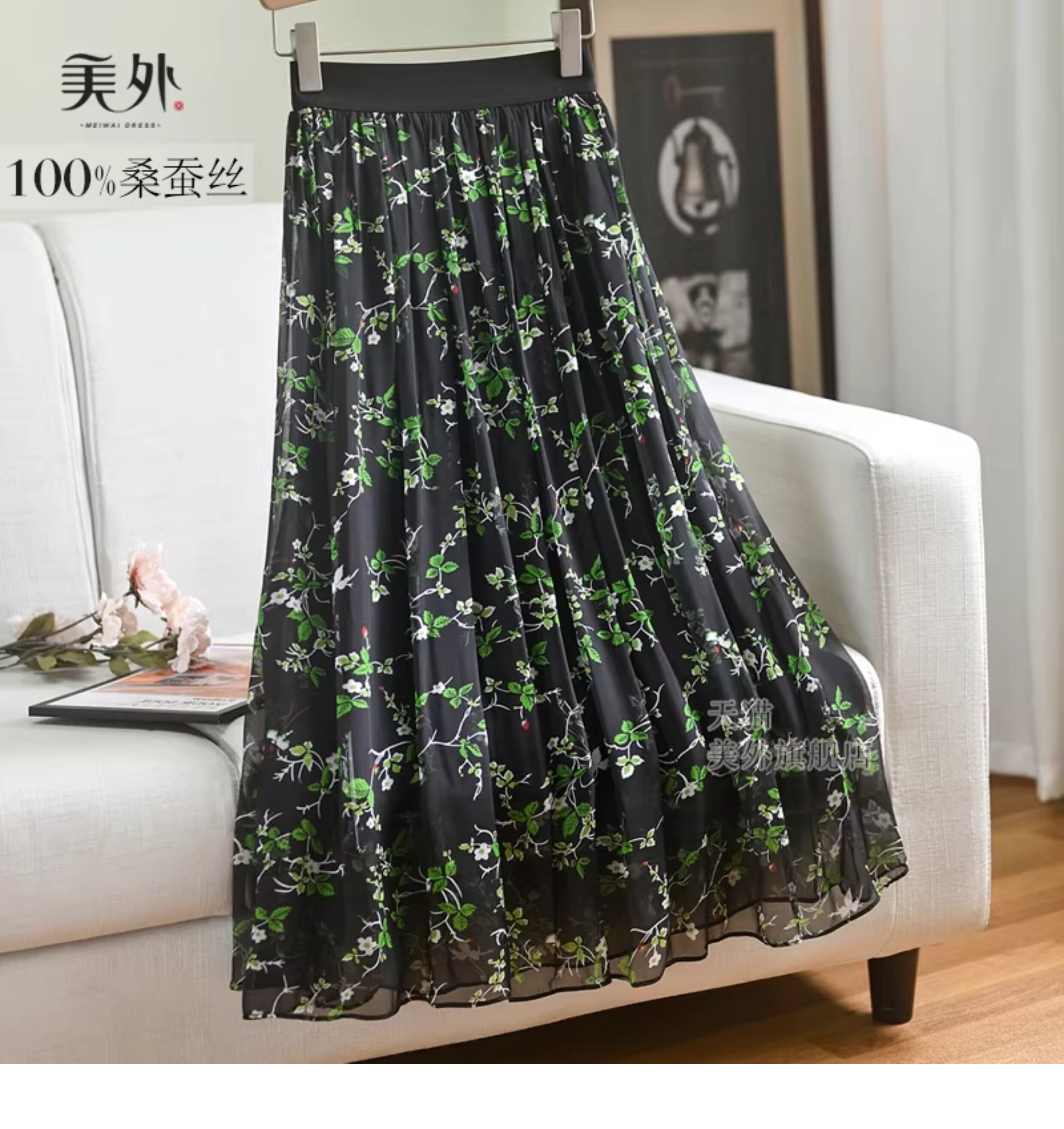 碎花真絲半身裙女夏季新款杏色印花半裙高級桑蠶絲漂亮裙子2026年